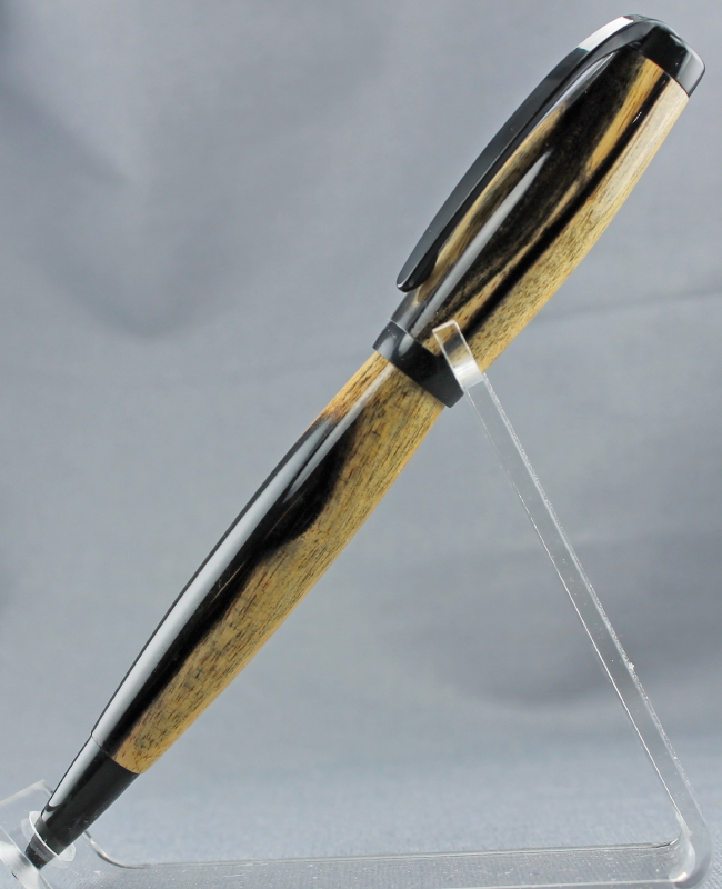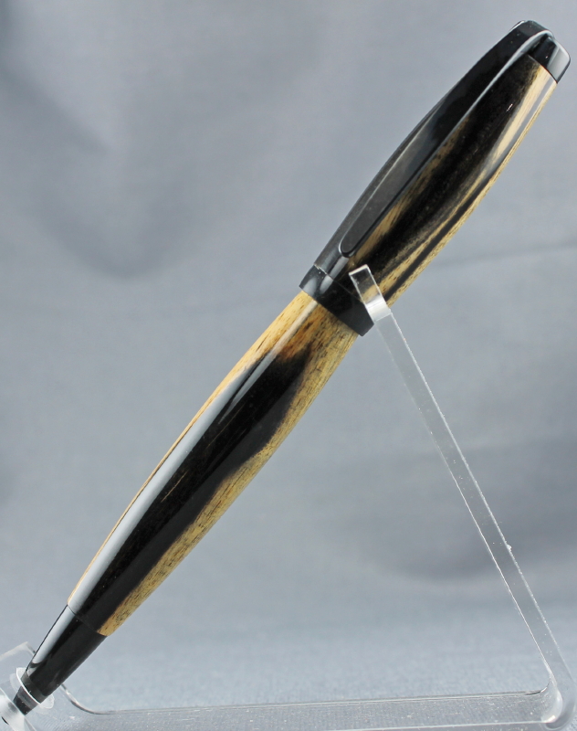 Hey yorkie, your work on this pen looks great, and the wood goes very nice with the hardware. Do you know if this (B & W) Ebony suffers the same tendency to crack as do other ebonies? I would like to do some pens with it, but do not like sneak peaks of the tube.