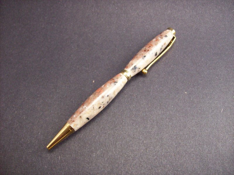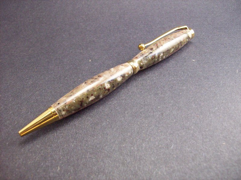 The second pen is a Corian pen segment. The Corian was new to me. A few different material to turn. Thanks to everyone in the "Plastic Newbie" thread. The Corian came out like marble! A final planning cut with the skew and then straight to the MM. Seriously nice look and feel. Too bad my photo didn't come out right.