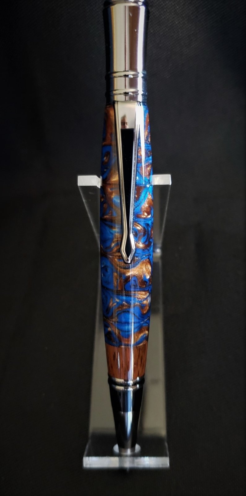 I was making this pen for a client and despite a very sharp gouge, I experienced a blow-out toward end. I was about to chuck-it. Anyway, found a rosewood cut off and, squared it all of, and made this. I liked it to much too much to give away LOL...so I am using it.
