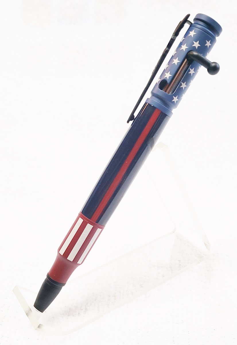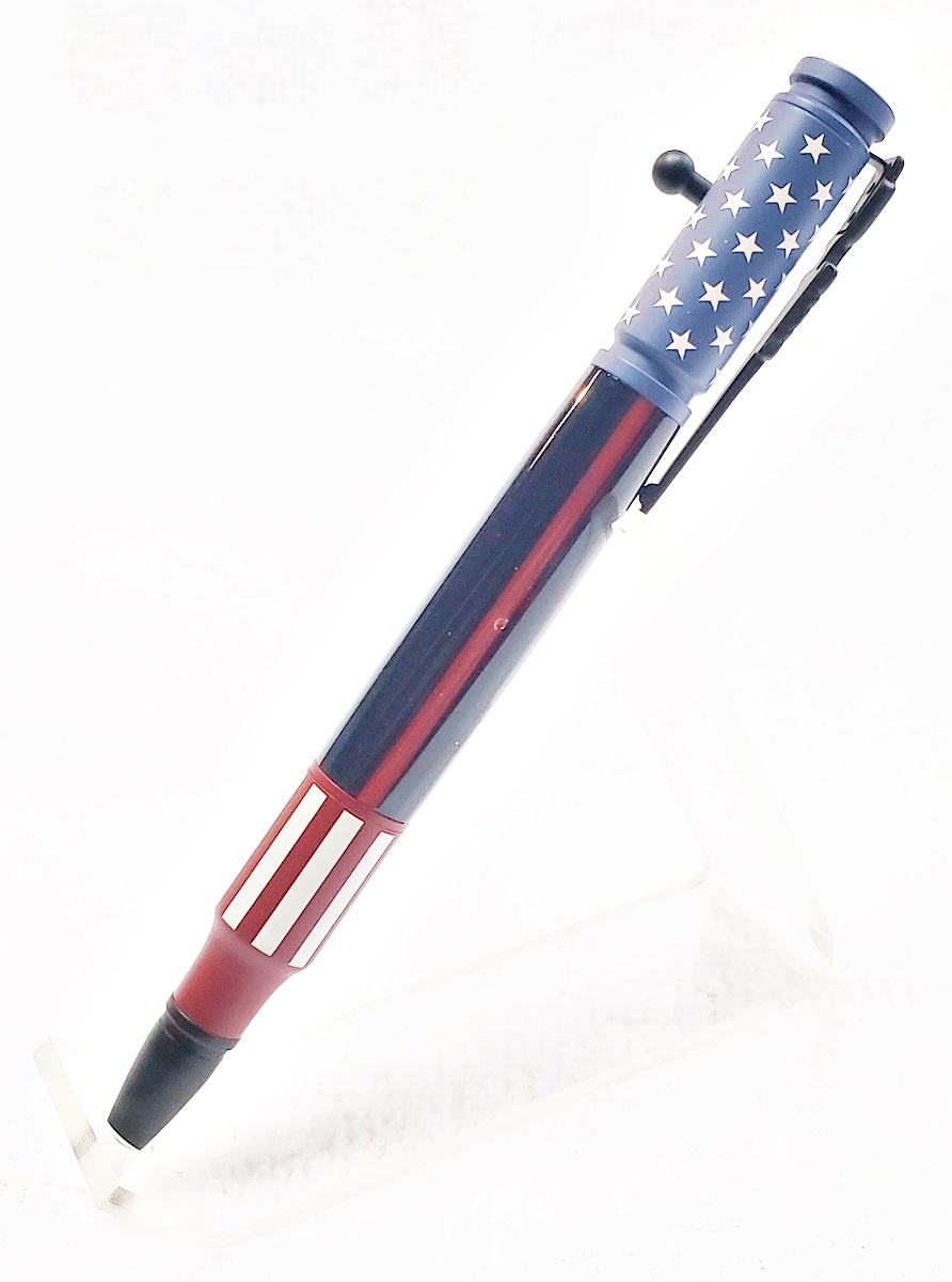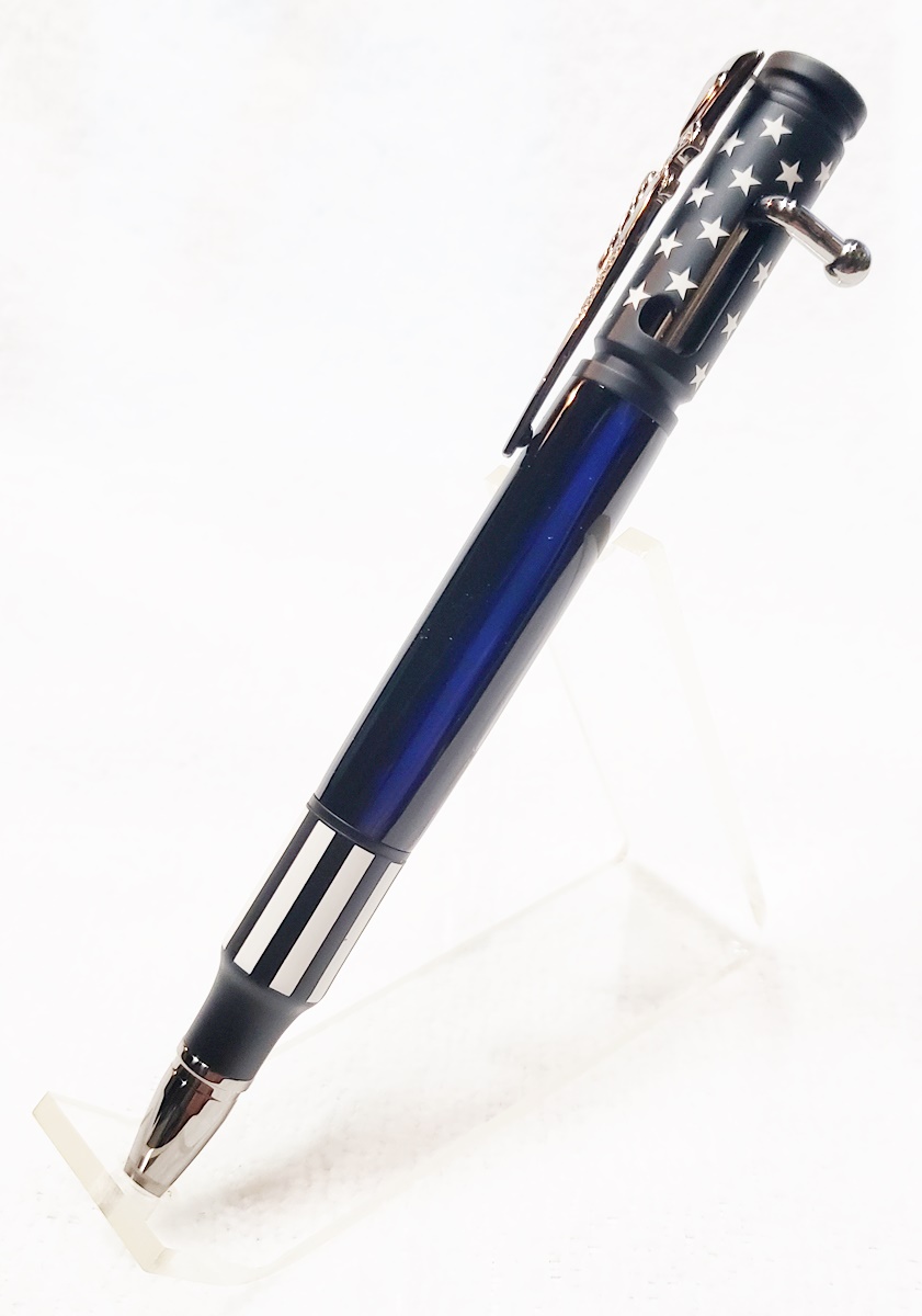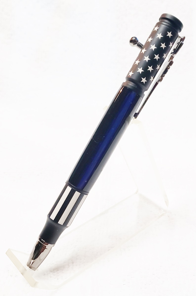 I really like the ceramic Bolt Action pens, and don't think they're too "busy". But I do agree that a simple blank looks best with them. I made one for my son with a thin blue line blank. He's a corrections officer.