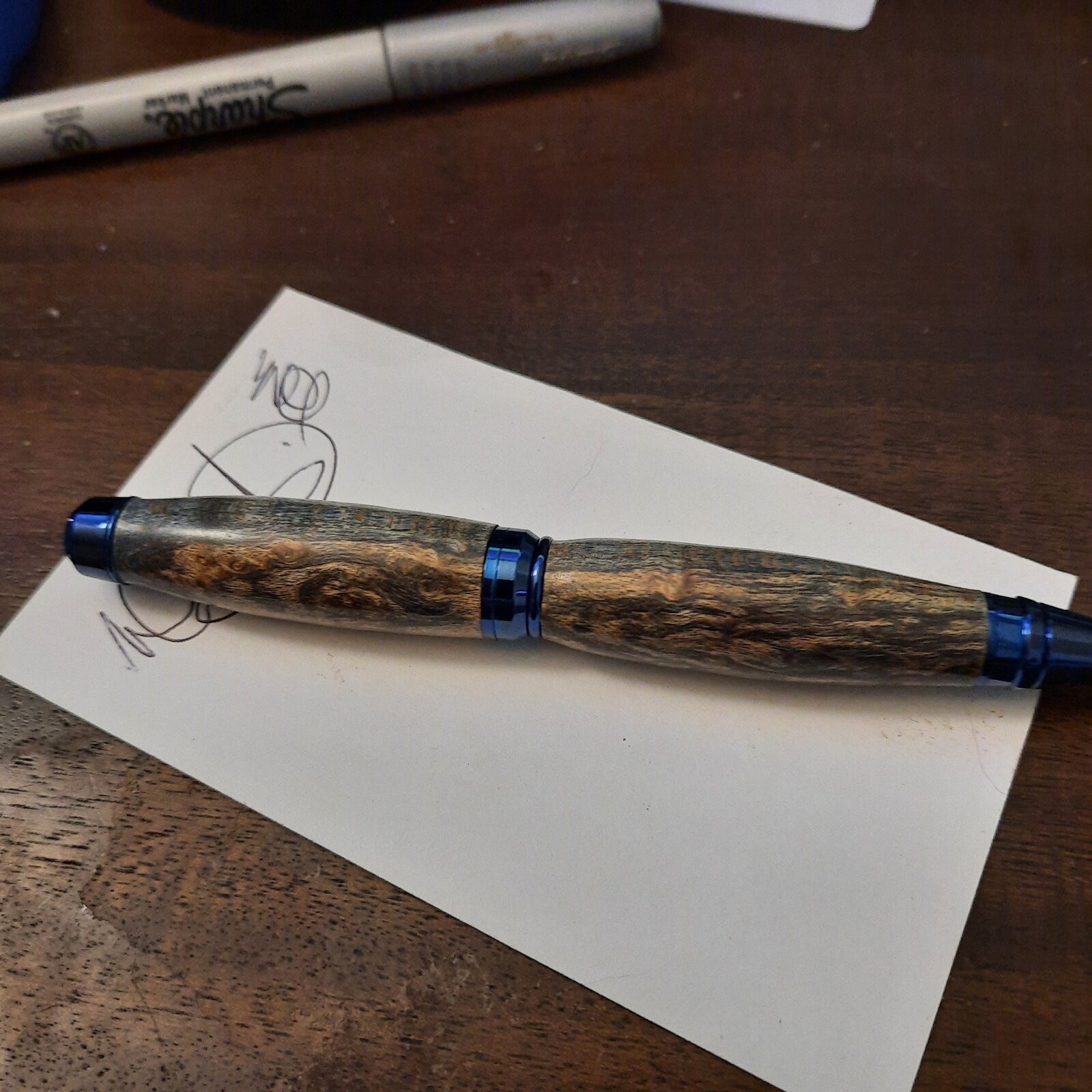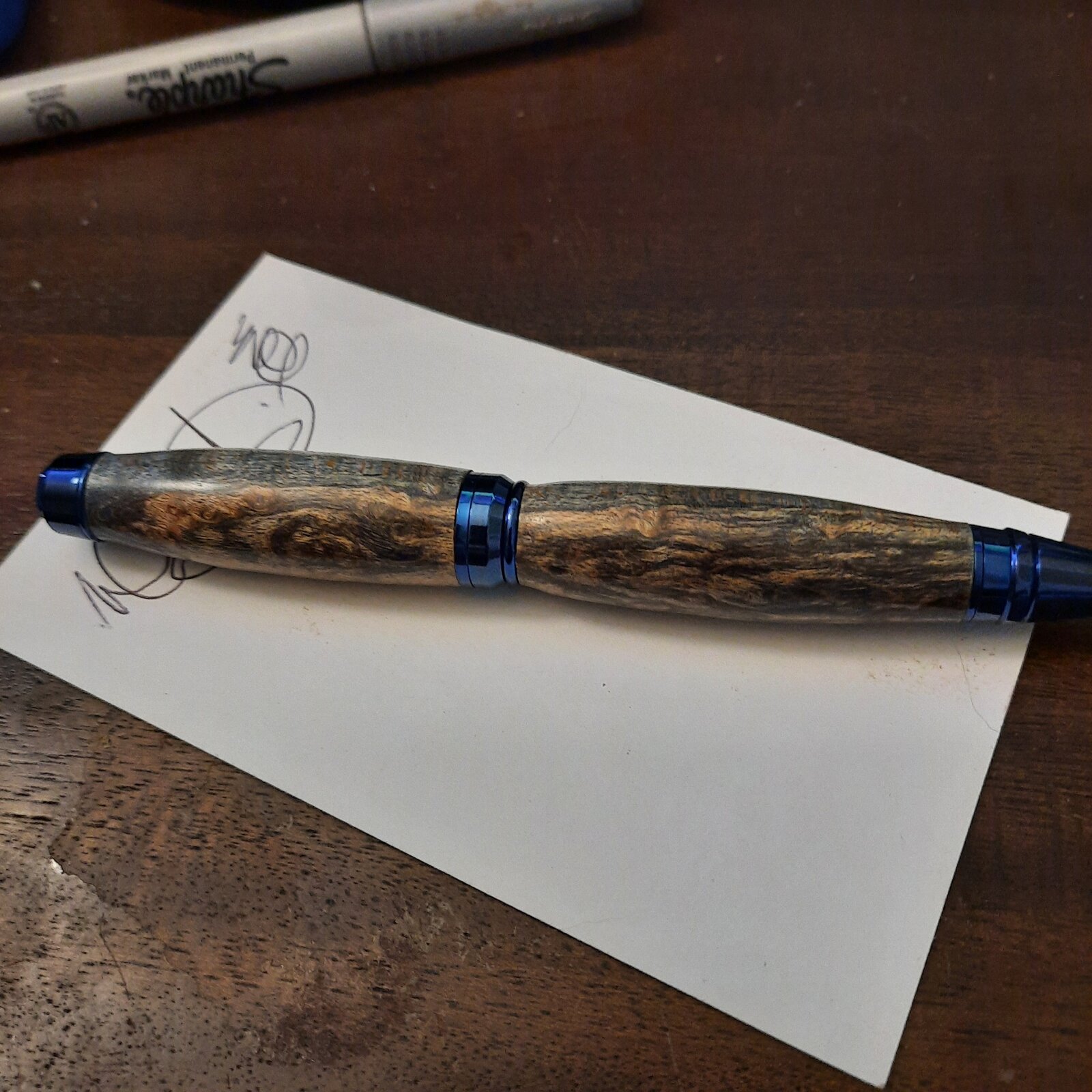 I am stunned what was inside the blank Quite pleased how this finish up after Pen 1 of the day had wormholes and #2 the blank blew out on the end. This was #3 for today. 2 more to go!