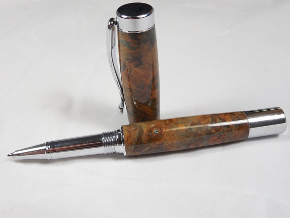 I just got my own stabilizing setup and got the first round of pen blanks through the cactus juice. This is my first one turned. Maple burl stabilized with blue dye. The piece was pretty solid to begin with so there was not a lot of color change. It made for an interesting effect.