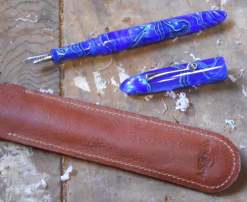 Based on the Sheaffer Balanced. The Sheaffer signature dot above the clip was by no means intentional, it just showed up and I put the clip under it. Nifty, as my mother would say! Blue mesh acrylic from Exoticblanks and polished Bock #5f from IPD.