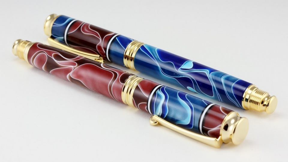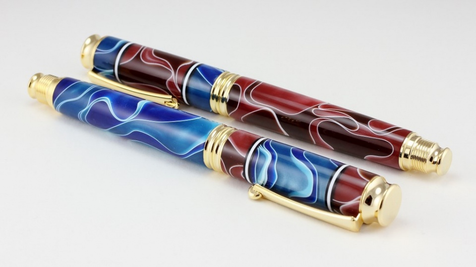 I could not decide on the color scheme as to which pen body should go with which cap. Ultimately the customer chose to have the pen body that would match the smaller stripe on the cap. I took pictures of it both ways for the customer to decide. These segmented pens are fun but when you are preparing things for Holiday sales it can get rather busy working on something involved like this.