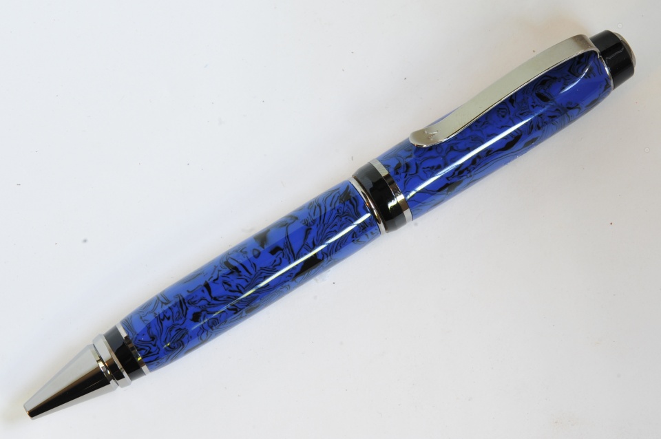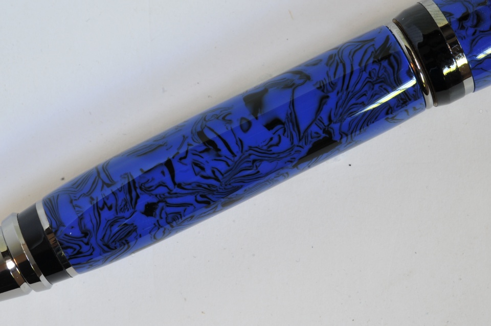 This was a nice material to work with also. Smaller swirls pattern though out the blank which makes for a nice looking pen. Also vintage cellulose acetate material. On a cigar kit. Keith