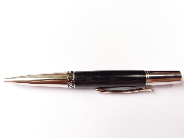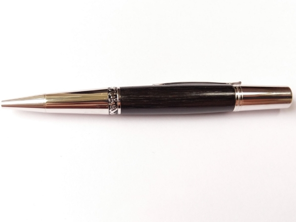 A Taylors Mirfield Platinum plated Zeta ballpoint with Bog Oak. The wood on this pen is so dark that its difficult to capture the grain properly in a photo.