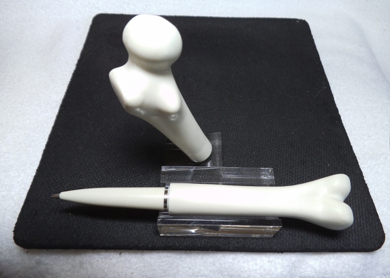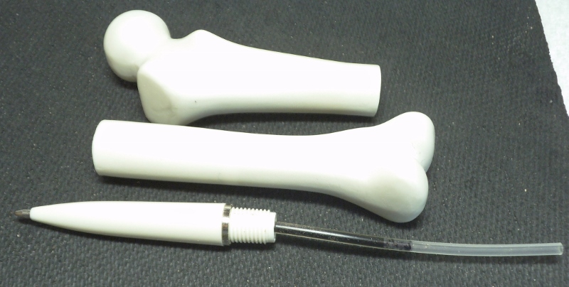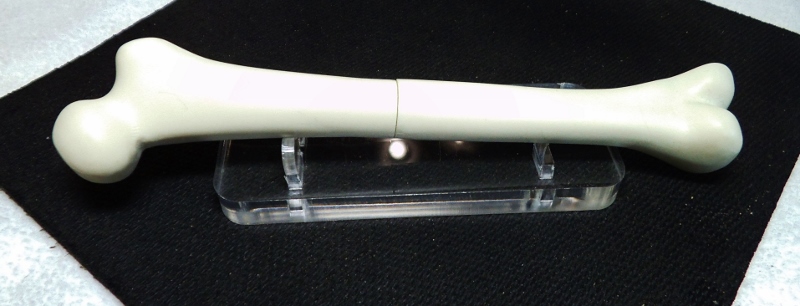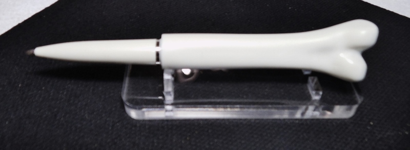 I found the bones of this pen in a bag of pens I had bought for parts, and thought some of you out there would find it interesting !! It was cast to represent a minature Femur, the largest bone in our bodys. The casting needed some diamond file work to smooth it out, as well as a complete sanding to bring back the color. Seems to be made of some type of dense PR. Front cone is one piece drilled and threaded with a silver ring to keep threads from tightening up. Seems I have a slight curvature of the ink filler tube !! Anyway, a little restoration, and I have a bone shattering pen. Pun intended. Jim S