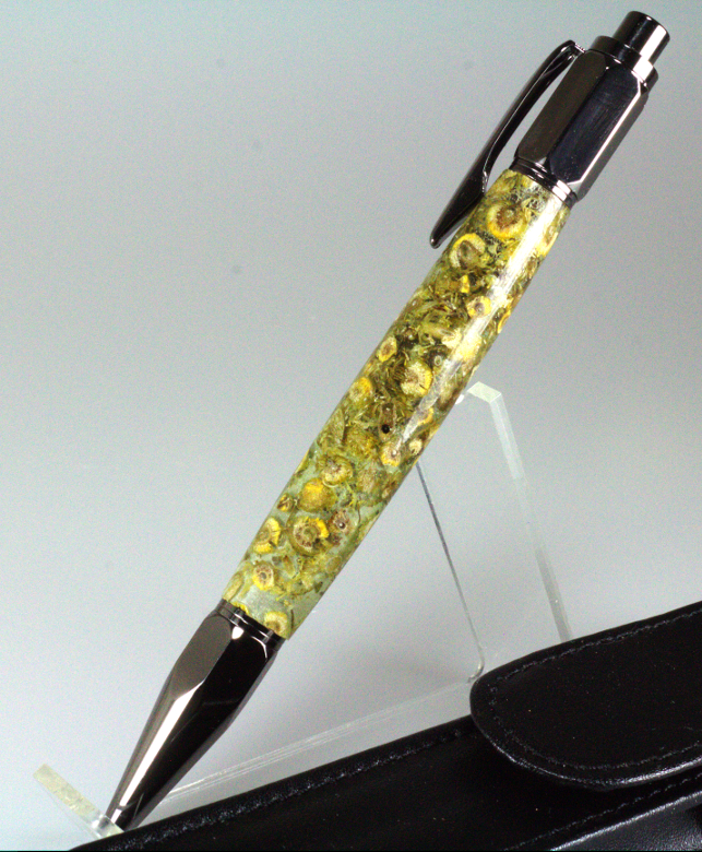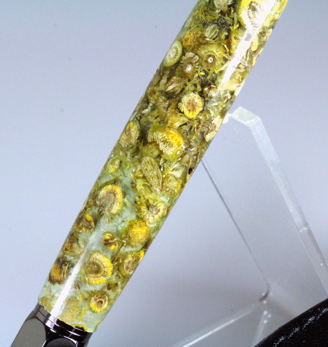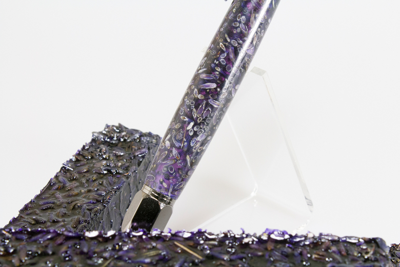 Figuring out PR ratios, colors and blending was interesting. As I turned some samples, I found that, of course, the resin didn't completely penetrate the lavender and the chamomile and the Buckwheat tended to chip out a bit. By using sharp tools, patience, light cuts and thin CA glue, I think the initial set turned out pretty well.
