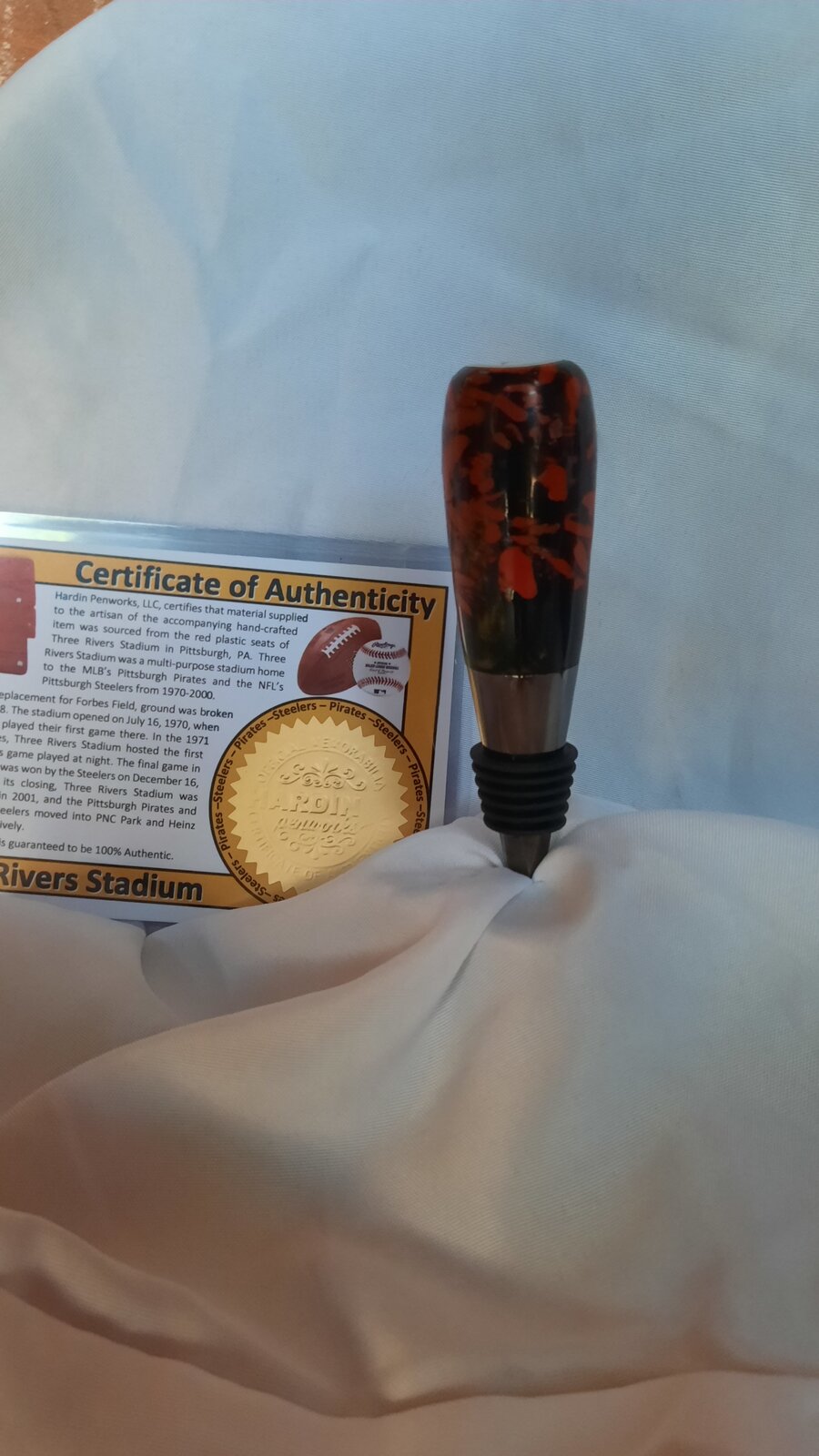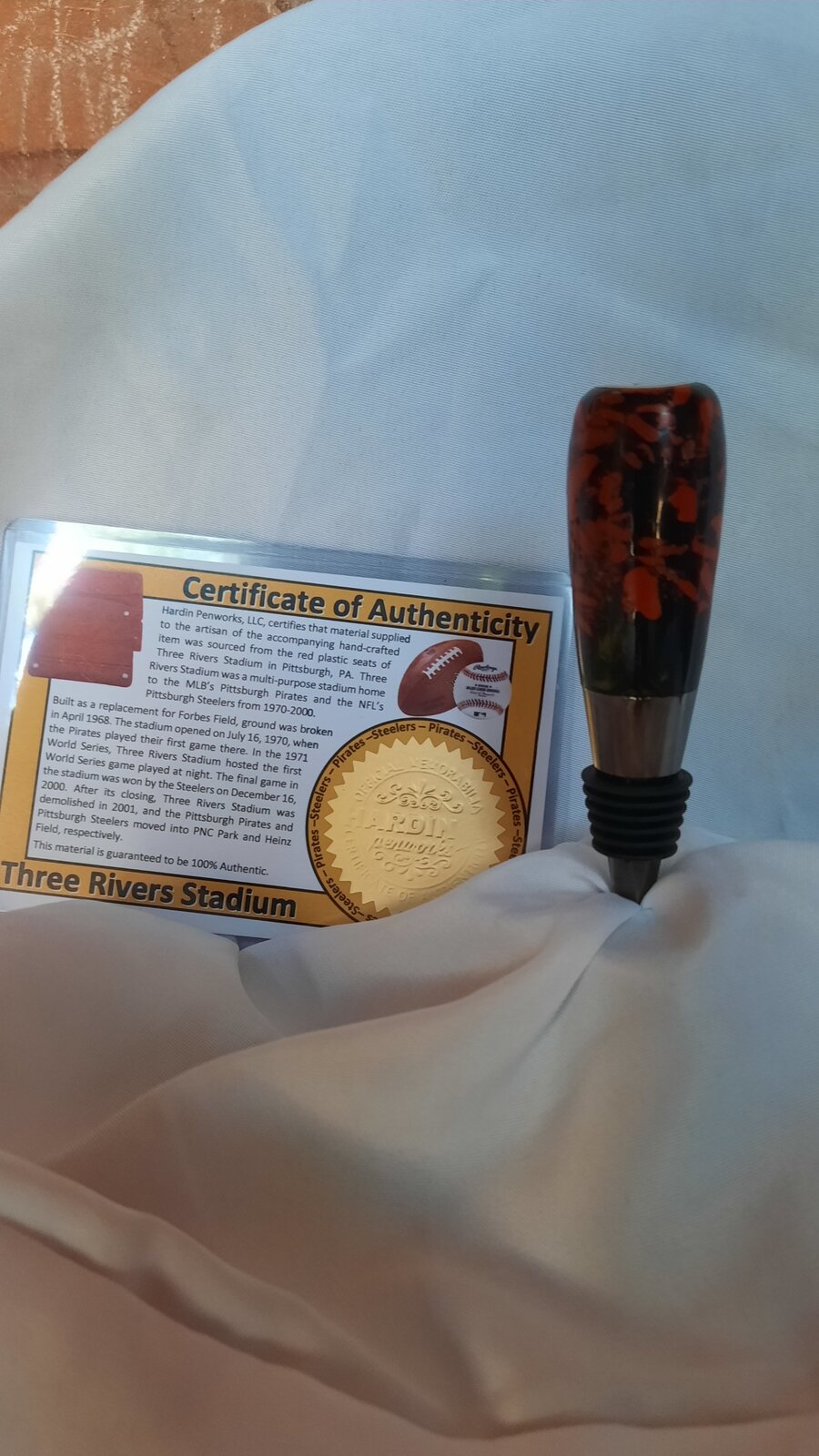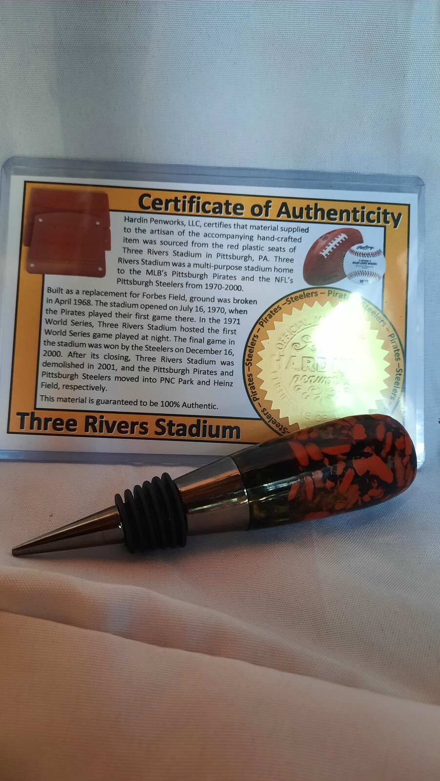 The 4 are with aq blank of a seat from Three Rivers Stadium