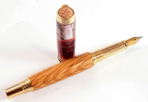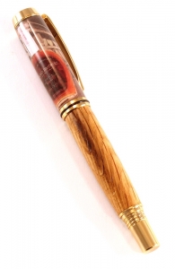 I bought a barrel stave at the A. Smith Bowman distillery and turned it into a Jr Gent II fountain pen. I did a label casting of a small batch bourbon bottle photo for the cap and a custom finial. I left the finial unfinished hoping that it would have the whiskey smell. It does but is very faint. I also lost more of the charred area than I was aiming for.