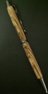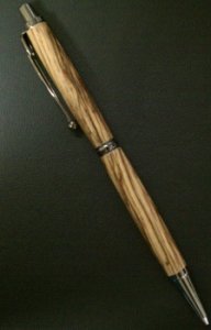 This is a BOW pencil I made this morning using a slim pencil kit from WT that is gun metal plated. My Step-mom wanted me to make her one and asked me how much around Christmas time. Obviously I am not making her pay for this as it would just be wrong lol. I love how straight I can get things now with my woodchuck pen pro. 2 thin coats of ca, 4 med coats ca. MM 1200-12000.