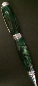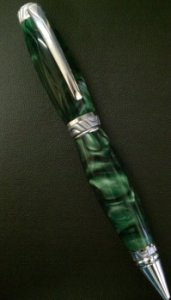 This next pen is the second one I did for the guy who sits near my wife at work. He likes thicker bigger style for his pens. I would have done B2B but he wanted it nice and fat. It is a Kelly Green from WC and a chrome w/ satin chrome accent cigar with chrome jr gent style clip from Wood Pen Pro.
