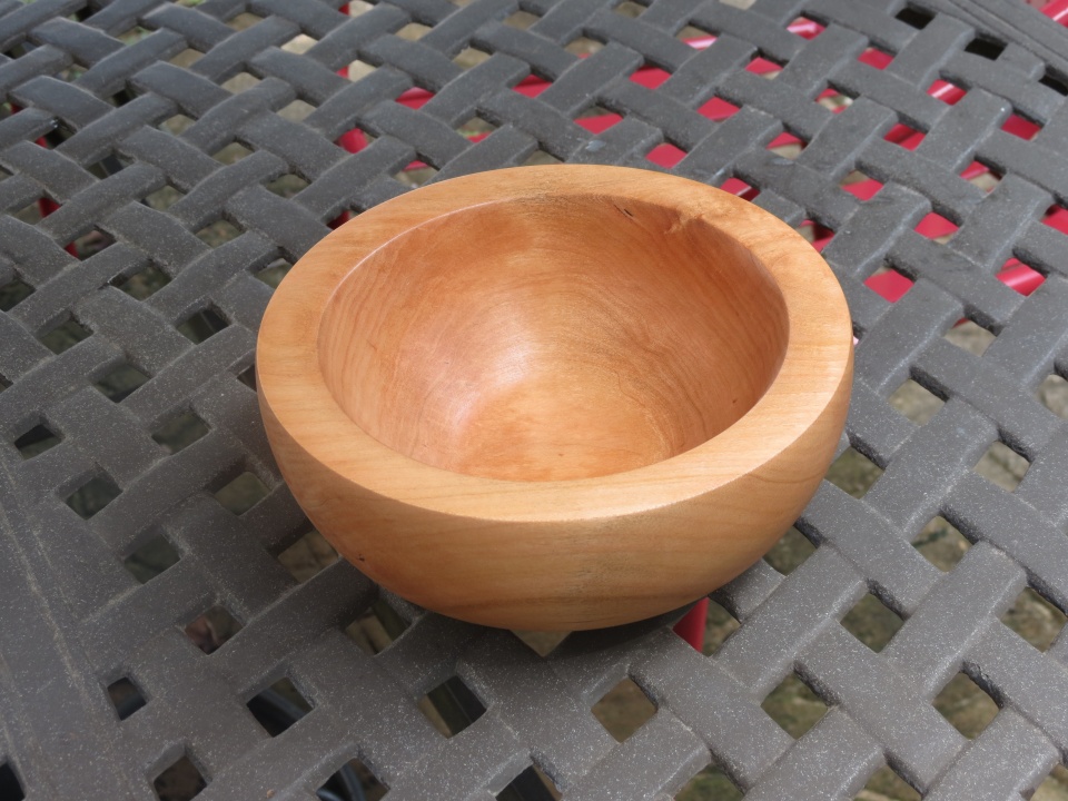 A professional turner taught me to turn the bowls thin so as to relieve some of the stresses that cause cracking. The bowls will warp and have imperfect shapes. I like the rustic/aged look that this gives and the woods natural contribution to its final shape that this gives. It also suits me because I do not have the necessary patience for rough turning and waiting until later to do the finish turning. Thinner walls can be a challenge since the spinning wood will start to distort as the walls get thinner.