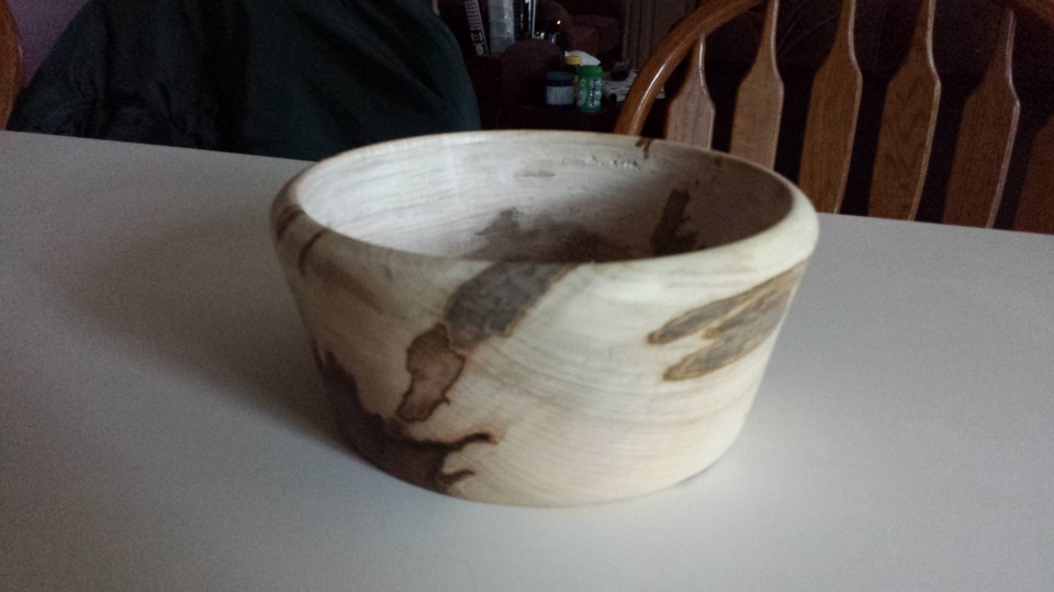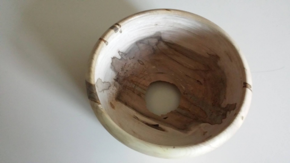 I had this piece of spalted that I was saving and it was perfect. I was 99% done, proud of the new lathe and my work, but it had just one little nick that I could not sand out. So of course, with it still mounted I slowly tried to work the nick out. Just one more little pass and.. well not so good! Perfection is overrated! lol