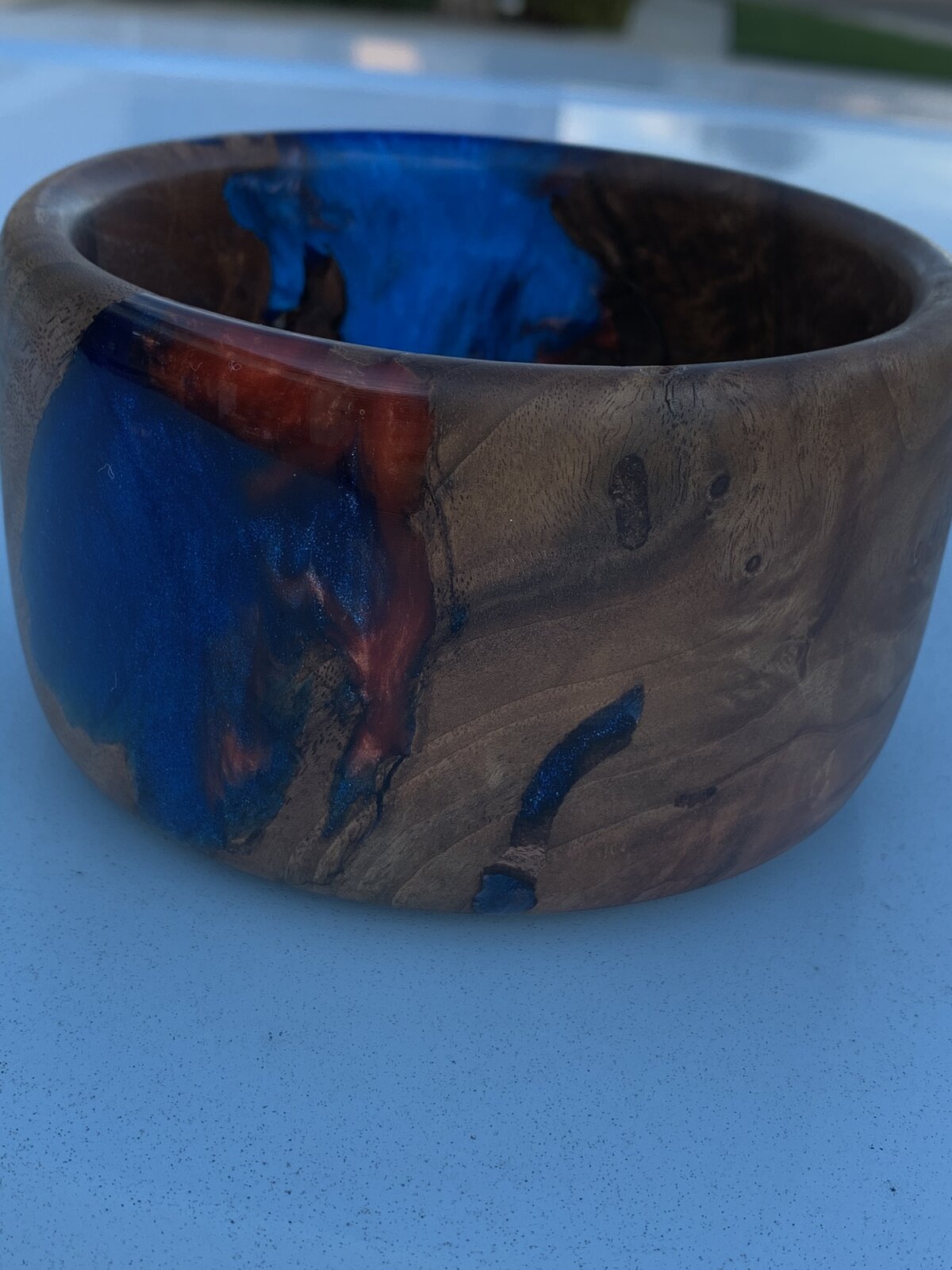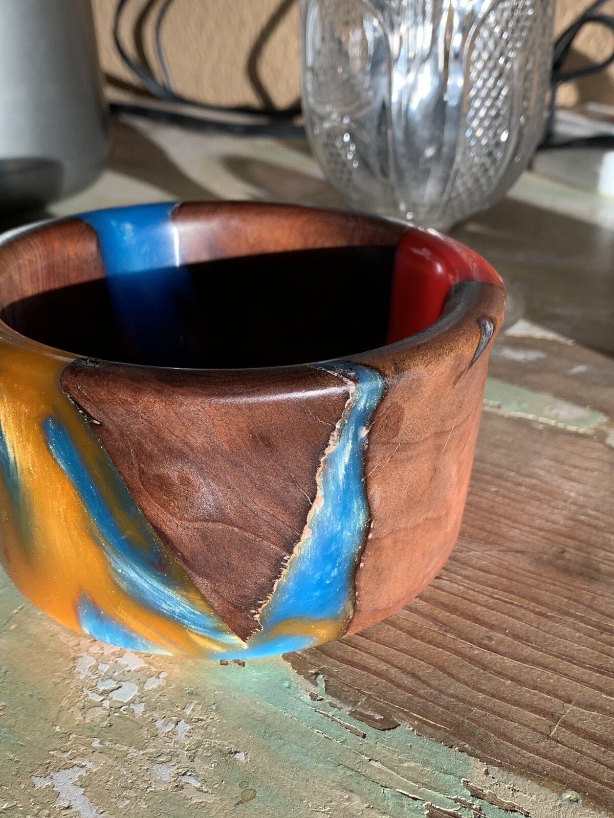 My first bowl is Alumilite clear slow and walnut burl.