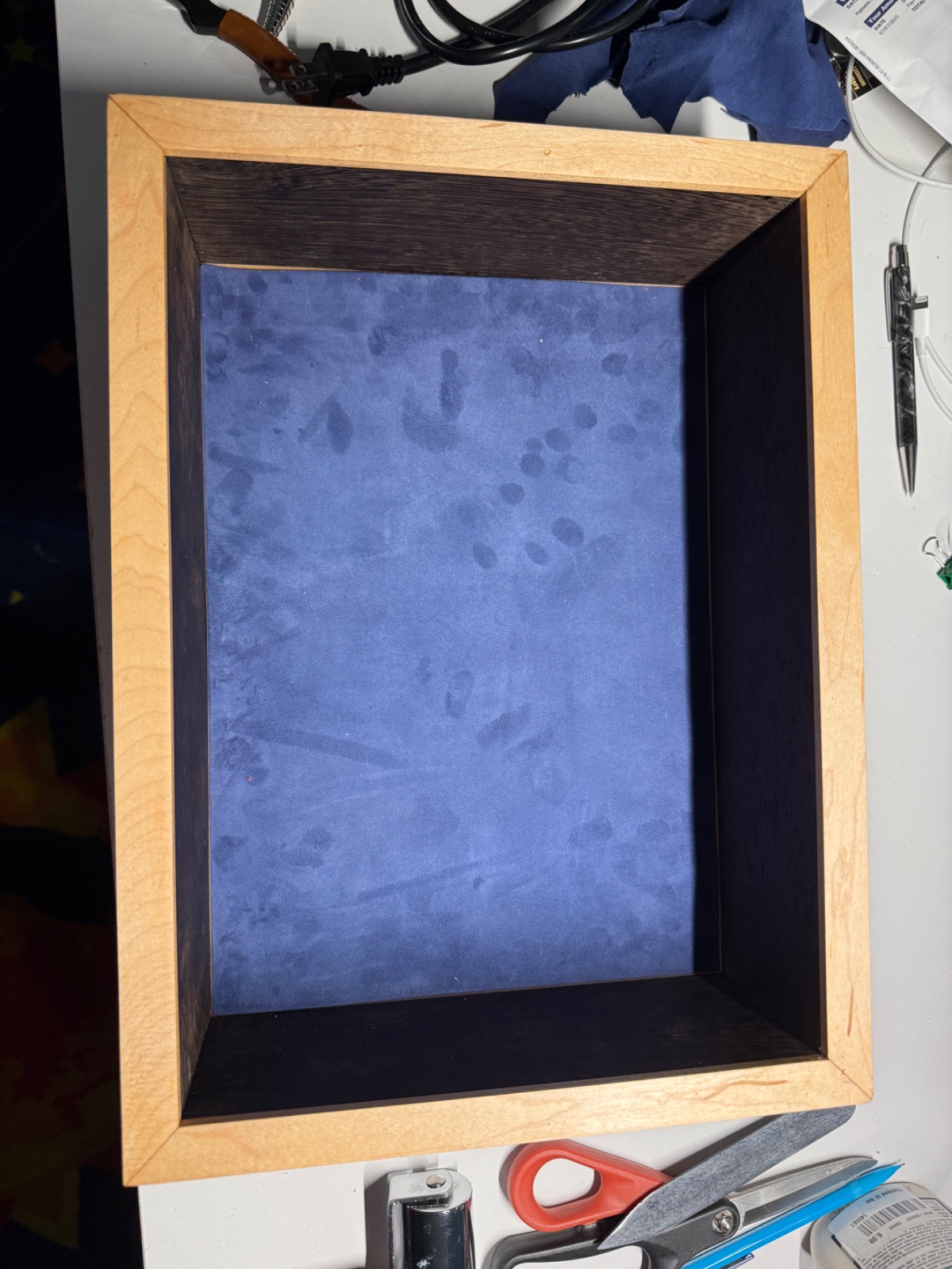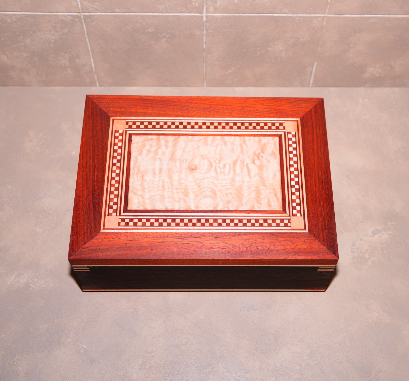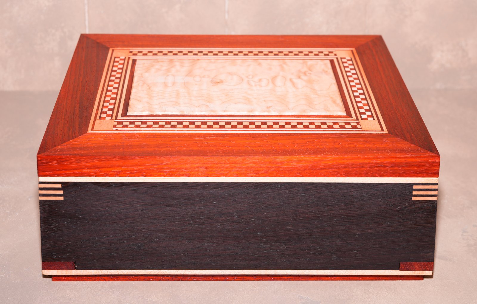The box has a lot that I'm unhappy with that I'll learn from the next time. It's a mix of wenge, maple, and padauk. I don't like the padauk keys on the bottom. If i could do it again, I would have done a single maple key, 1/8 wide to match the three at the top. The box also isn't perfectly square, which resulted in some of the keys at the top being a different length. Not a lot, but noticeable and bothersome (to me).
