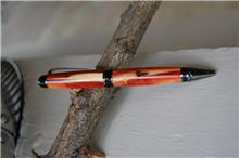 I thought this one was a beauty, but I would like to know what anyone else thinks. This box elder is beautiful stuff, blood red throughout most of the blank. Had to work with the wormholes a bit, which were through to the tube. BLO and 8 coats CA.