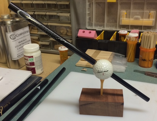 This is a Brad G idea. Since I`m not a metal sort of person I had to resort to the real items. Golf ball of course is a Taylor - Made and the shaft is a graphite