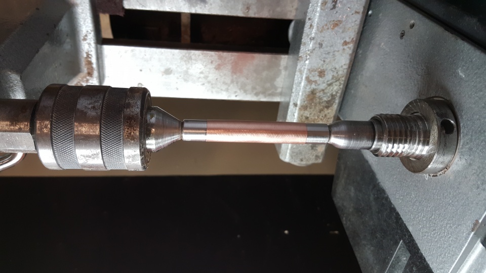 I tried polishing to a bright, reflective surface, but I couldn't get a good picture, and bright and shiny was boring to me. The copper was polished through the MM grits, then I took down the shine with maroon Scotch-brite (https://mt-rsr.com/products/scotch-...Vr1dqm_send3K6cvHXJFscm0WDVa6d6RoCVr0QAvD_BwE). I moved the pad slowly from the headstock out, then back the opposite way - it made a nice crosshatch pattern, but I can get a good picture of it, either.