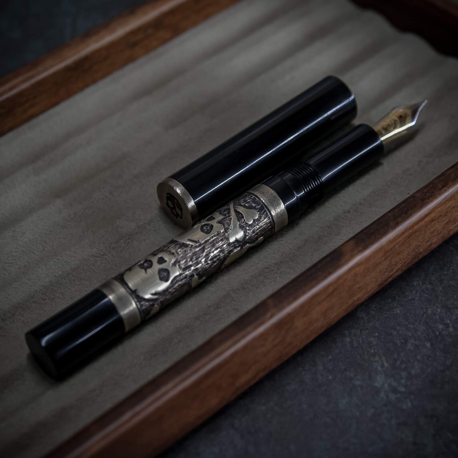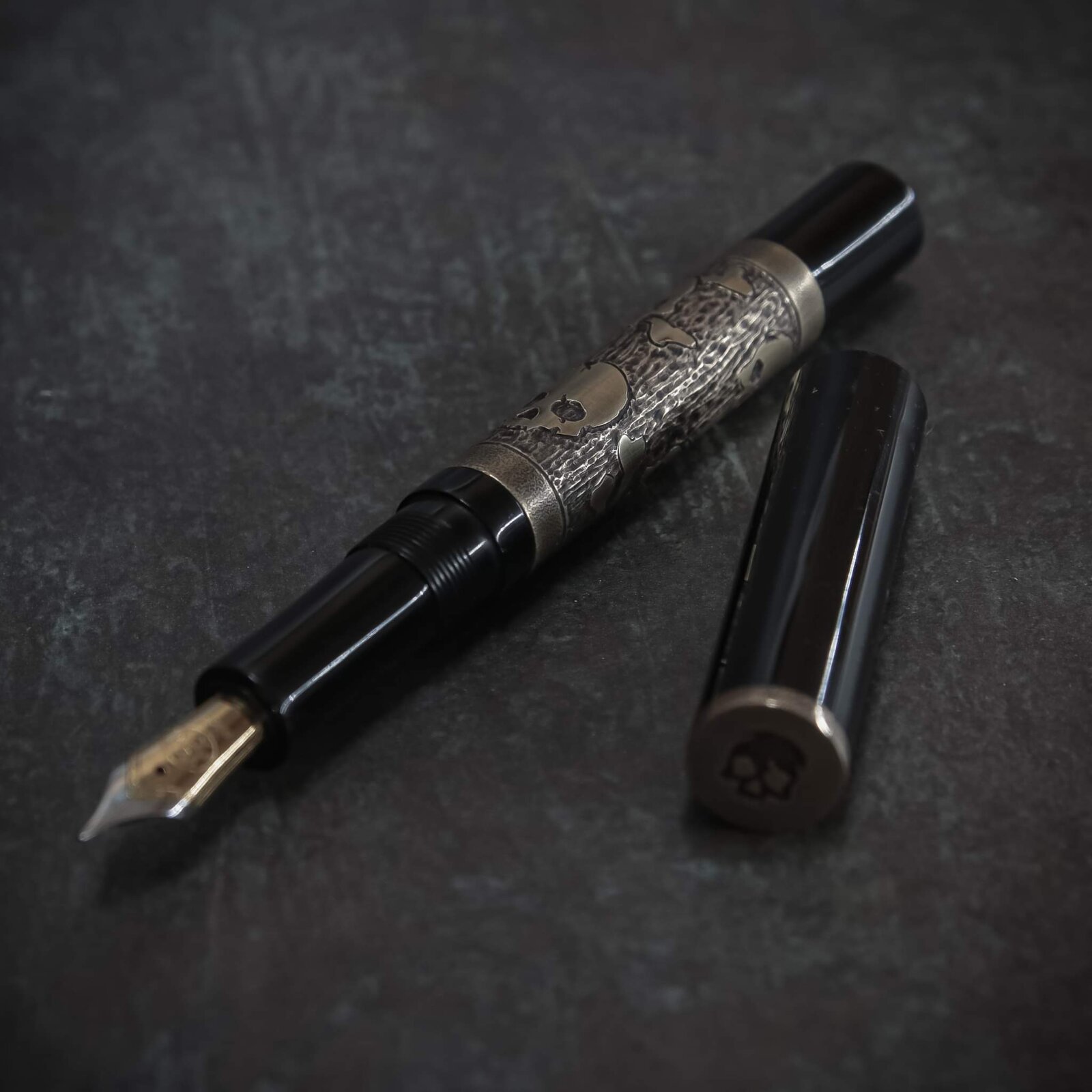 As I wrote in the title - brass, black ebonite. Laser-engraved skull motif on the nib. This is a short series of 5 of the same pens.