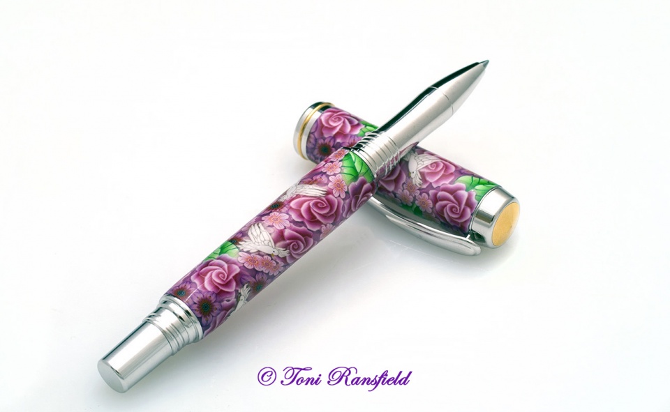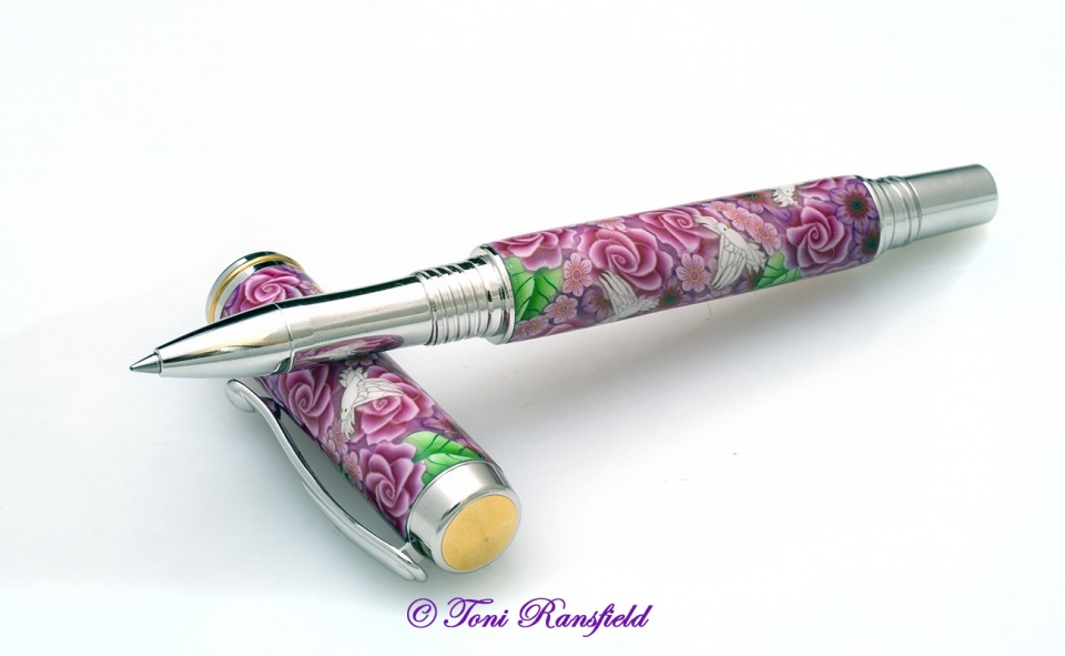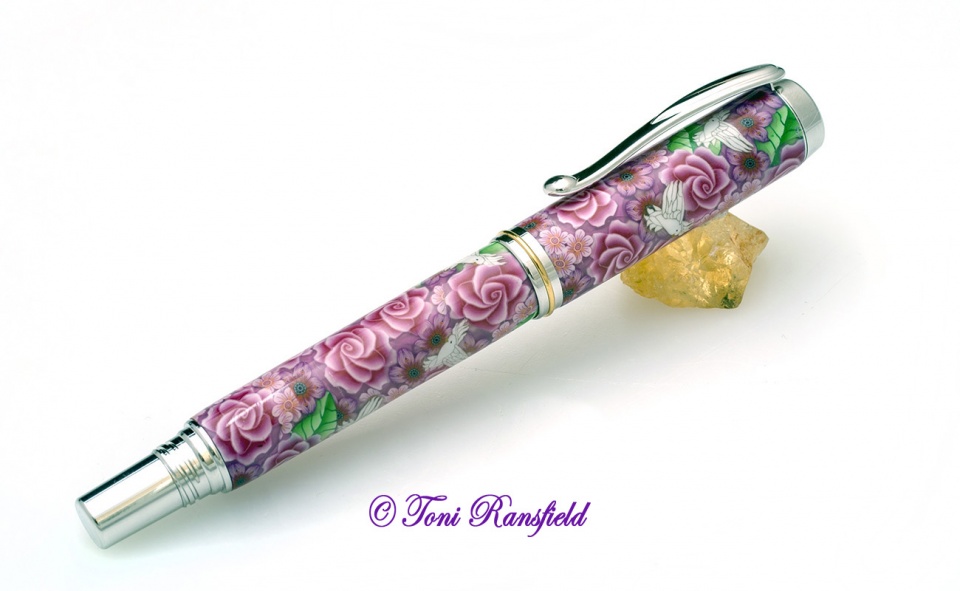 I was approached a few months ago about doing a pen for a donation to the Breast Cancer Awareness Foundation. I was very excited about doing it. I could design it anyway I wanted and of coarse it was going to be a Pink Rose with Pink Flowers and to set it off with Doves. As you can see from the post I was very excited as this foundation is close to my heart as my sister in law died 3 years ago from it. Here's to you Mary!!!
