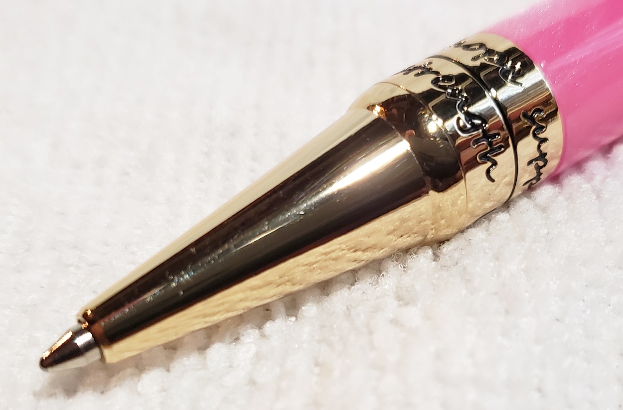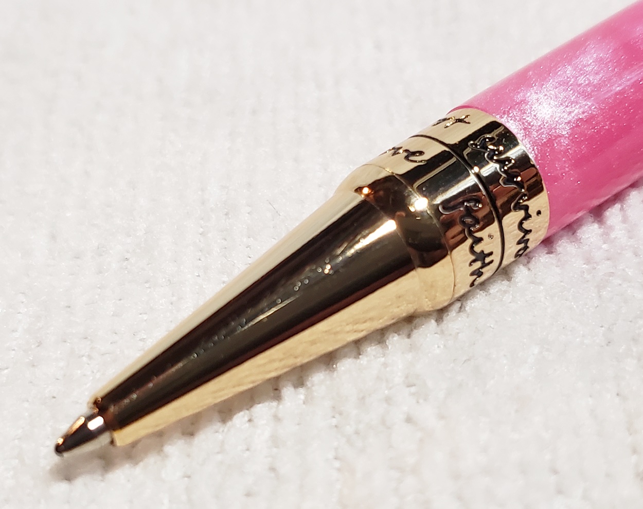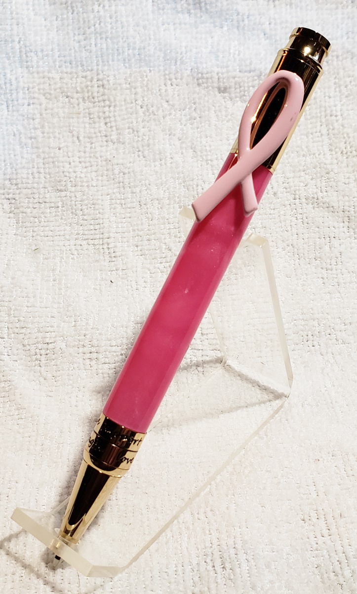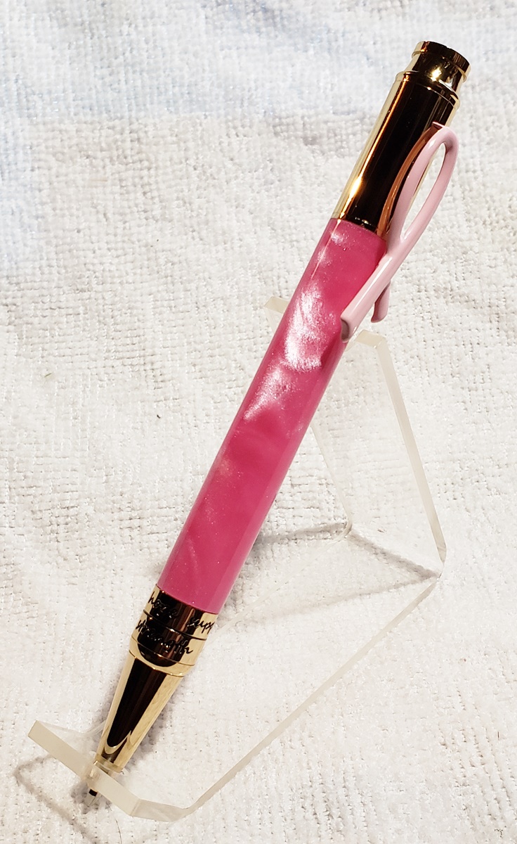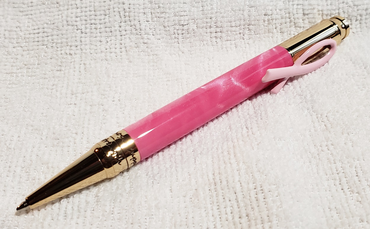 This the redo of the cracked blank. I actually like this one better. The pen is a Breast Cancer pen in gold from Woodturningz. The blank is an AA called Pink Passion, also from Woodturningz. Very happy with it.