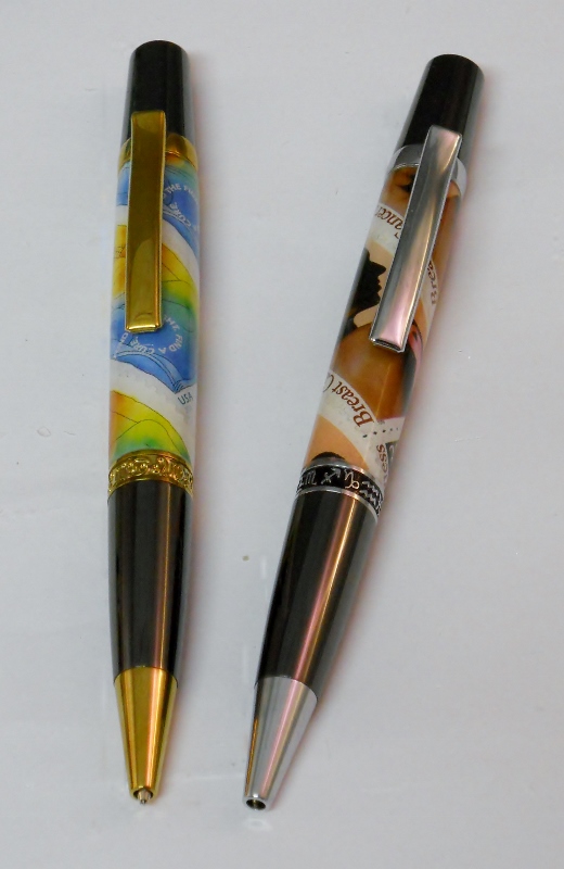 A arkie Member Joined Dec 7, 2008 Messages 304 Location Siloam Springs, AR Sep 6, 2015 #1 A pair of pens made with Breast Cancer Research semi-postal stamps.