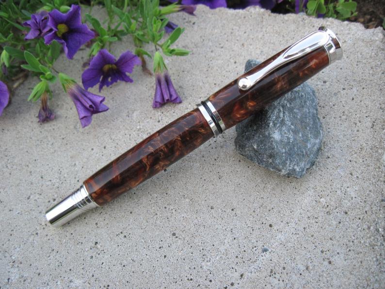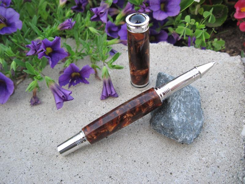 The Bronze Fire is Dawn's/Ed's creation which went really well with leaving the tubes unpainted. It's on a Jr. Retro. Feeling pretty good about my second postable pen. The other pen is a blank I was bless with from Steve at pen artistry and finished with the 20 coat CA. I'm not so sure about the pen kit though. It's a Pacifica with the fish. I'm finding these kits to be a bit chinsy. Anyone else have experience with these?