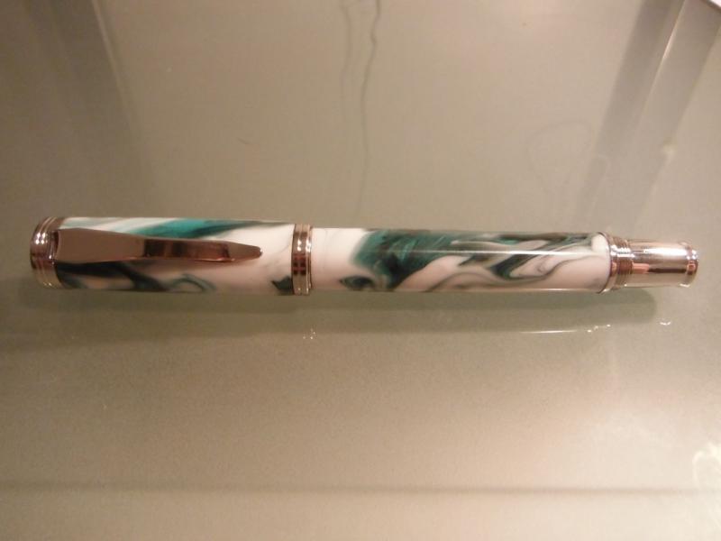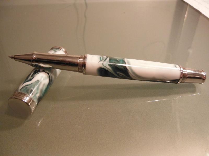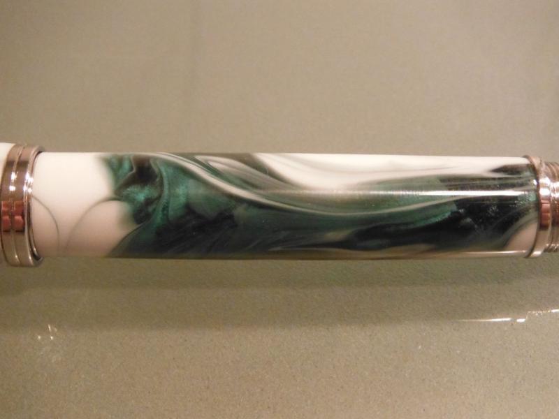 This is a Brooks Arctic Blast on a Stainless Steel pen kit. The blank had been sitting on my shelf for a year and now I wonder why I let it sit for that long. The depth of the colors in this blank is amazing. This is by far my favorite pen I have made.