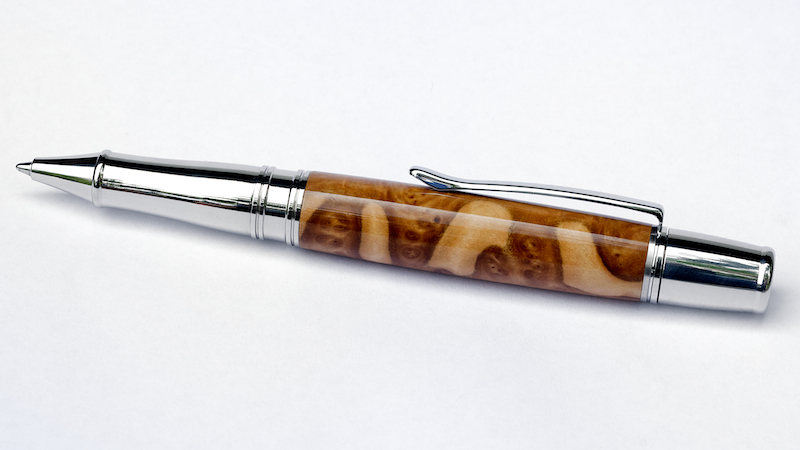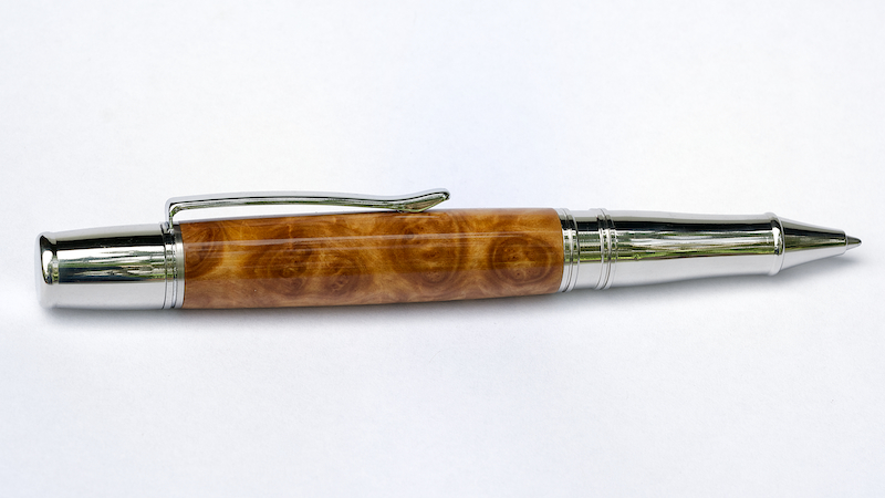 A nice piece of Brown Mallee Burl I put on a Stainless Steel Liberty Kit. CA finish.