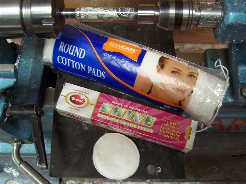 I bought a polishing wheel with drill arbor from harbor freight along with metal polishing compound. Drill chuck in headstock and live center to keep it in place and you're making things shiny. All for less than $10 and much less elbow grease
