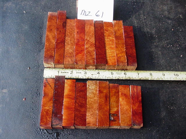 MZ61, $25.00 Manzanita burl pen half blanks. Eighteen pieces measure about 3/4 x 3/4 x 2 1/2 to 4" long. Manzanita is prone to cracks/checking but I try to keep that to a minimum on pen blanks. Really checked wood goes in the "casting" pile. I'll pay shipping.