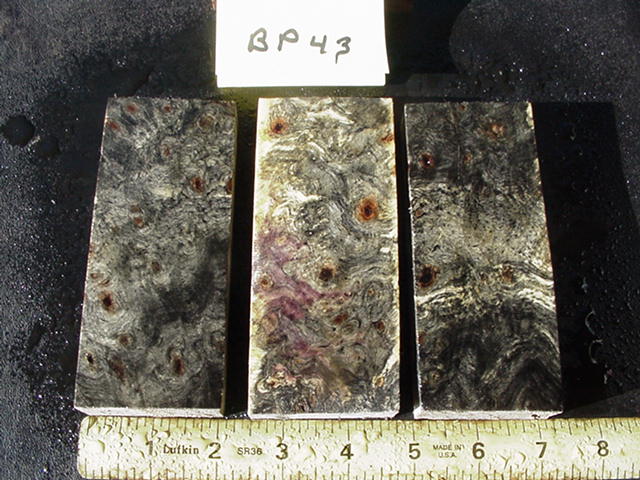 BP47, eight blanks measuring 3/4 x 3/4 x 5" long. $20.00, I'll pay shipping. I lowered the price on this set, it didn't come from the same large slab as my previous lots that had lots of eyes/color...these still have the color buckeye is famous for but not as much figure.