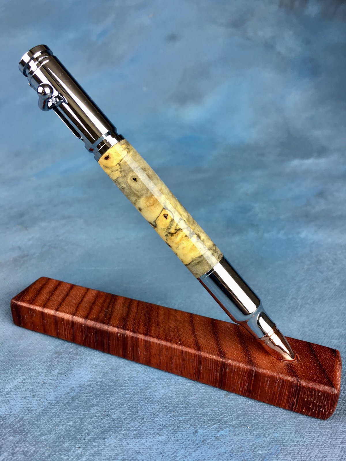 I finally made a buckeye burl bolt and it pleases at least me. As with many burls voids have to be filled and this blank was no exception. CA of course.