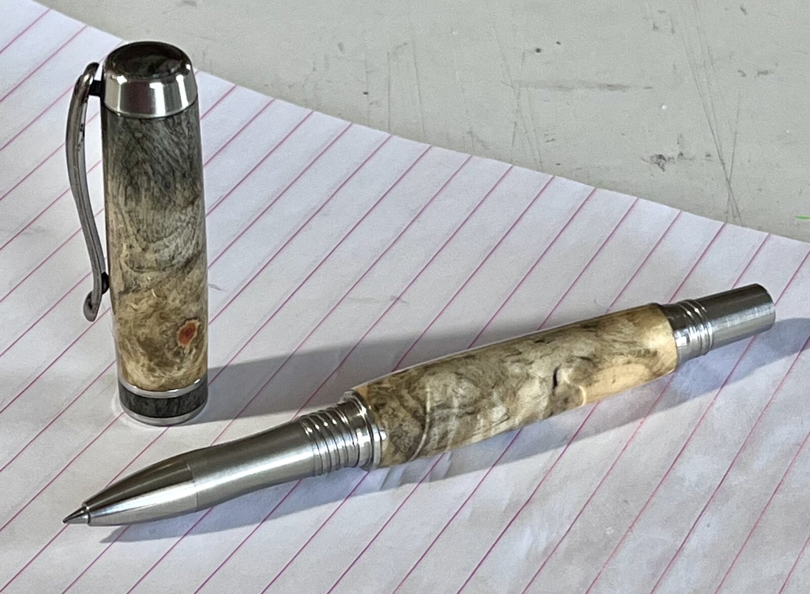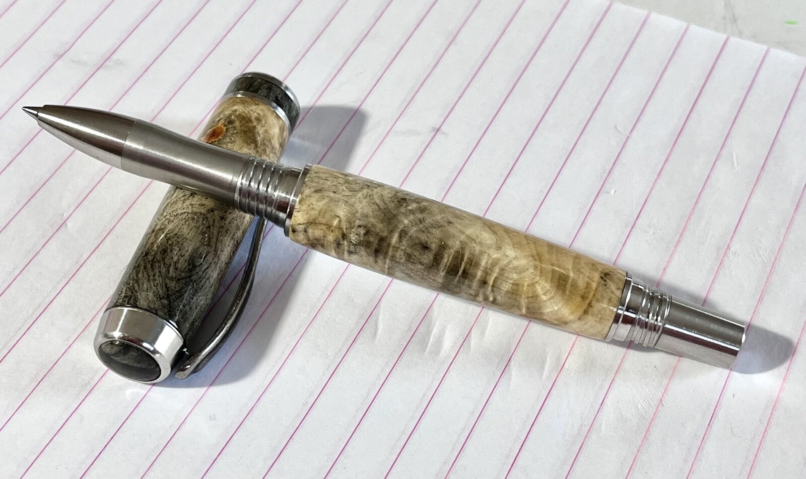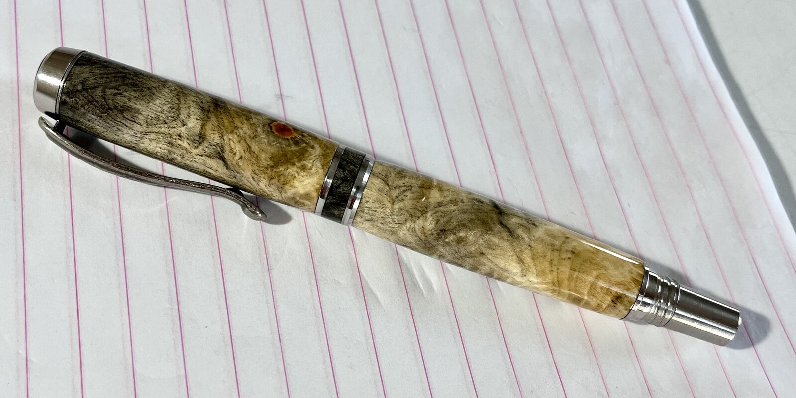 I finished this pen today on their new Bandit pen set. I had enough scrap left over to make a matching finial and center band, all finished with Gluboost.
