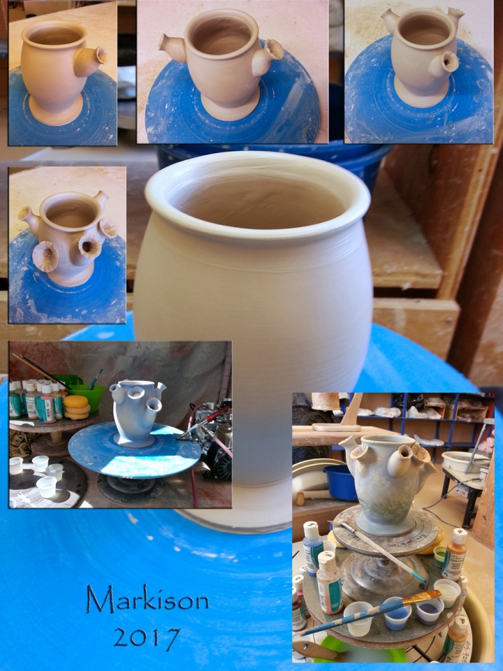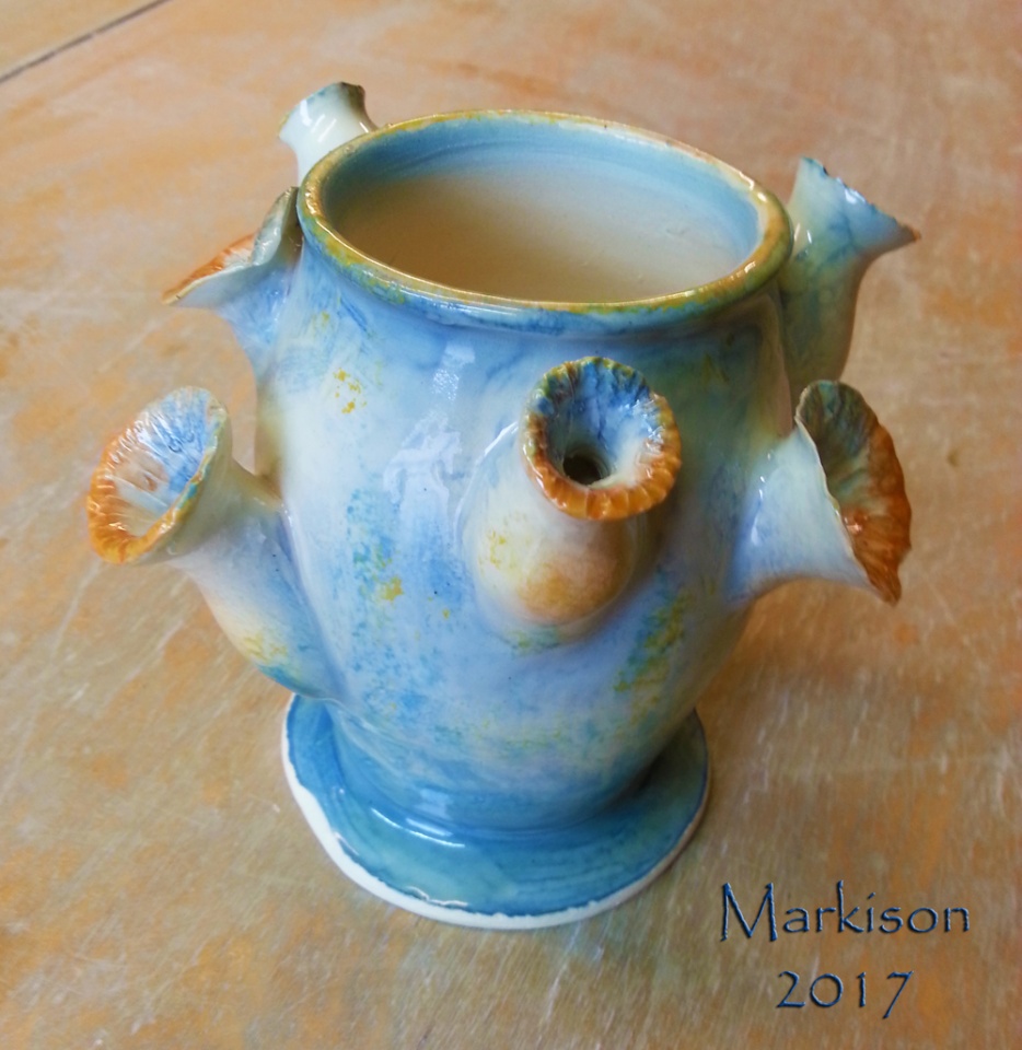 Buds separately thrown on the wheel, attached with clay slip, ends finished with fingers and sticks