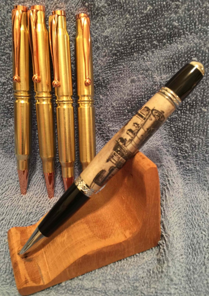 Had to get a few bullet pens ready to ship out tomorrow. Decided to turn this locomotive blank while I was in the shop. This was another nice blank that I had gotten from "firewhatfire" a while back. The first one sold quickly on my etsy shop. Not sure why I never took time to turn this one. But found it in my stash today & decided to turn it.