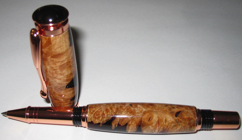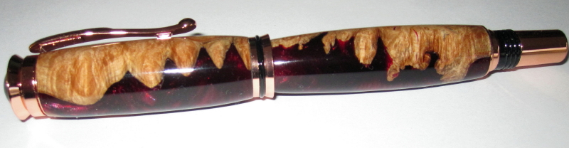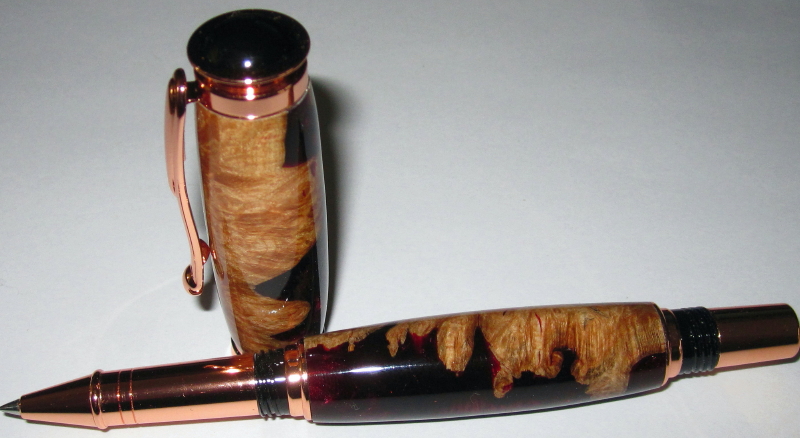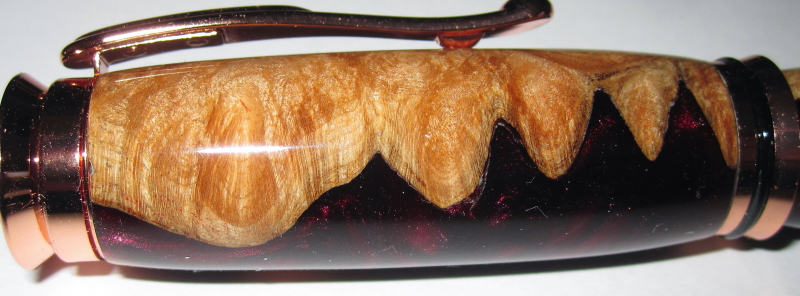 I had some trouble finishing this. I first applied BLO to seal the wood, then I finished like an acrylic, then I finished with CA. It turned out fantastic and I love the combination of burl and acrylic.