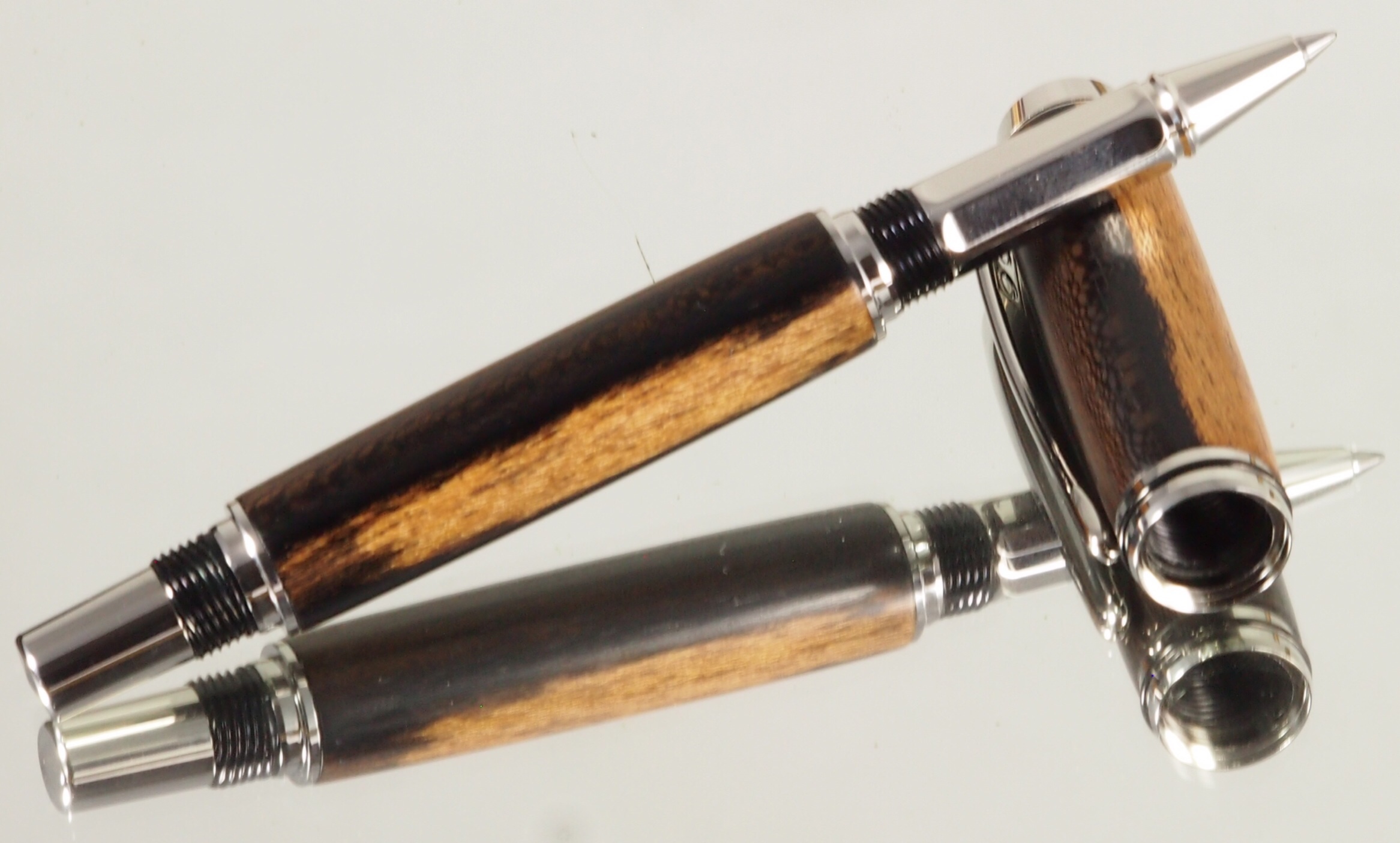 I received a small block of burmese blackwood from a very generous IAP member yesterday and could not wait to do something with it. The block had a white stripe (sapwood I guess) so I cut a blank to include a white and black section. I used the blank to dress up a platinum navigator.