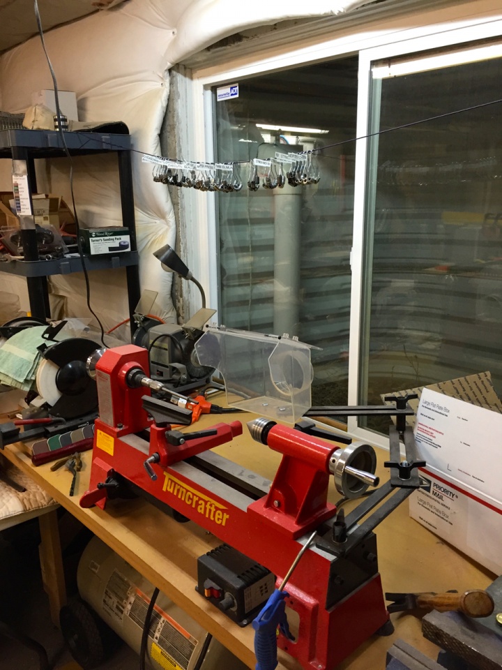 Strung them up over my lathe: