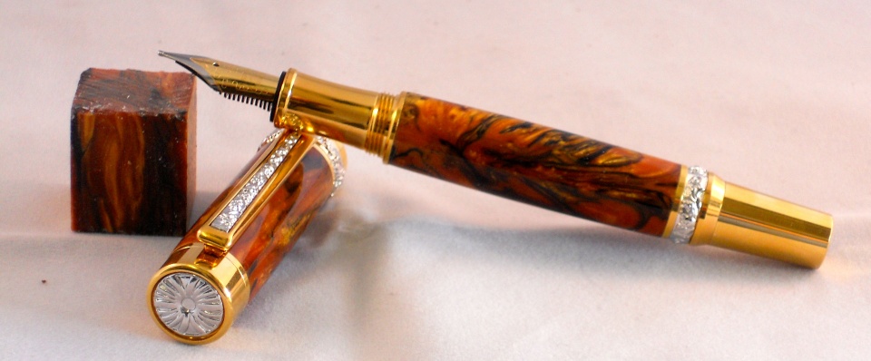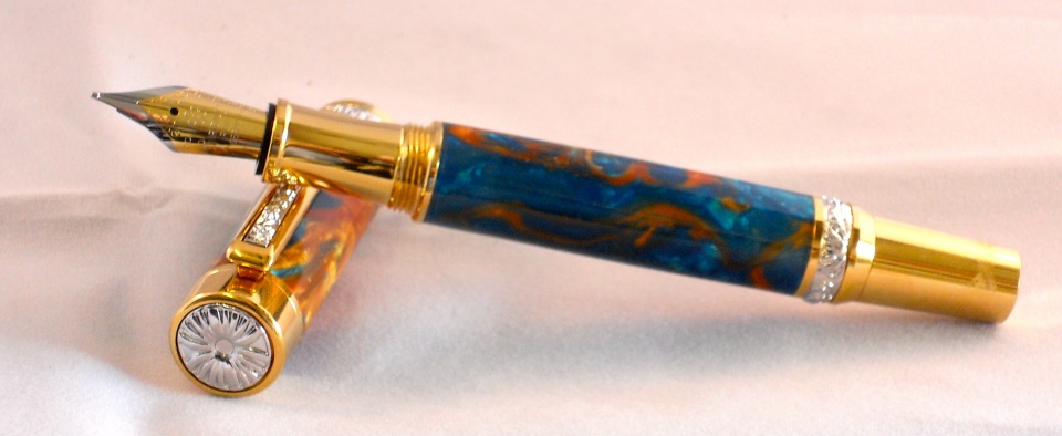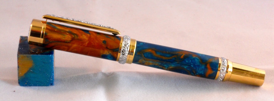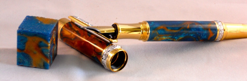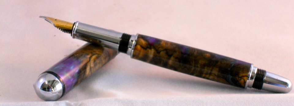 Been a busy few weeks and getting on top of the gifts and orders that appear at this time of the year. Whilst I was doing what I was supposed to be doing for others, I thought I'd have a go at a couple of Roman Harvest fountain pens I got from Timberbits when I visited them a couple of weeks ago. They are done with Aussie made acrylics and I was pretty happy with my first efforts. :biggrin: