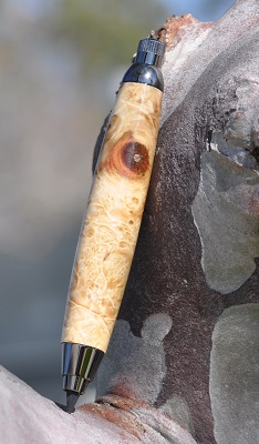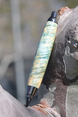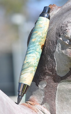 My daughter has been selling these sketch pencils at school. This is a Box Elder Burl that was Stabilized and Dyed Blue (first try at dyeing, didn't use enough die). Love the way these turn after being "Juiced"