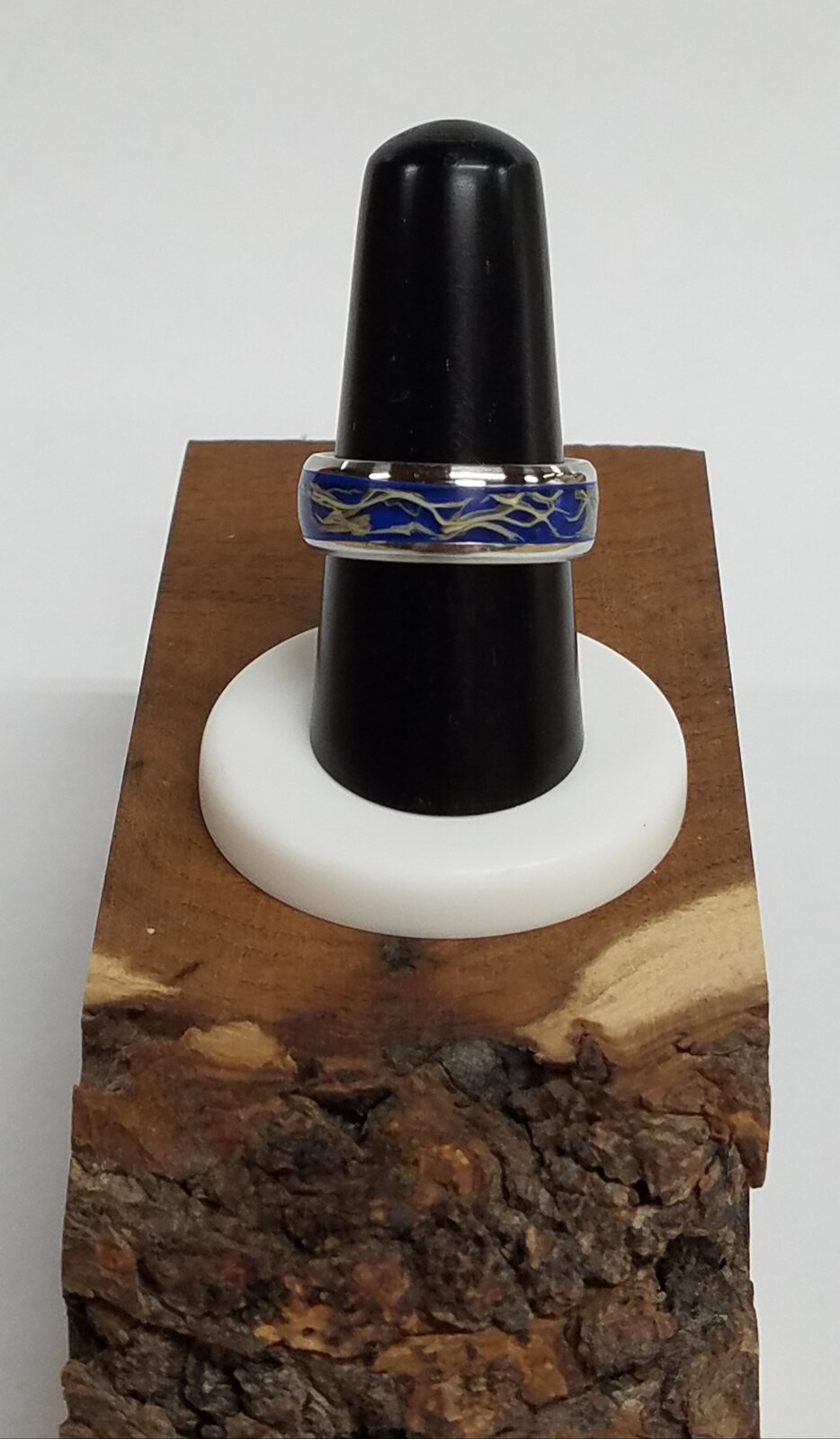 I have attached a picture of the resin I am using. Got it from Amazon but there are lots of brands out there. Alumilite has come out with there own brand that I may try. It's a one part resin that does not require it to mixed with a hardener. You use a UV flashlight to set the resin and it can also be placed in the sunlight to further cure it, but not required. The resin is fluid but not to the point of being overly runny. I usually place a small amount of resin in the groove, place whatever I am using as an inlay into the resin, hit it with the UV light for about 30 sec, then repeat. Once I have the groove completely filled, I go back and fill in any gaps or holes with a layer of resin, hitting it with the light as I go. Sometimes I do place it in the sun to help fully cure the resin to make sure it is good and hard. Then place the ring on the lathe and sand smooth and polish.