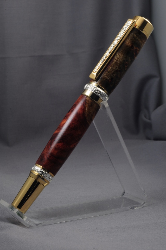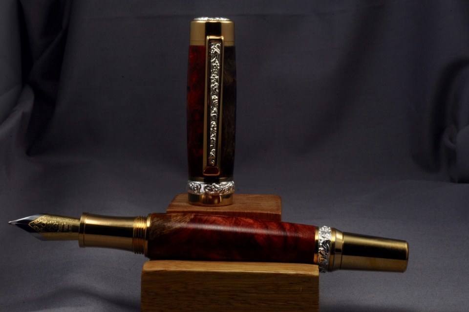 Cambridge Fountain Pen - Gold / SS with a two tone amboyna burl / CA (thin) finish