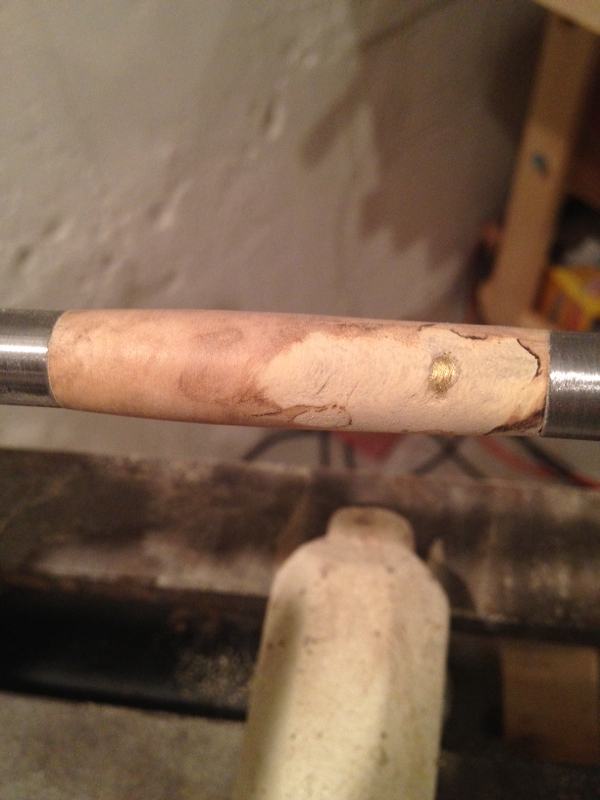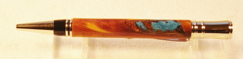 I hate to throw away wood. I would fill in with a contrasting material of a darker color. Metalic powers with thin CA. Put the powder in the hole first, pat it down, and add the CA next to it so it wicks into the powder instead of floating the powder out of the hole and all over the pen. Do not use accelerator!!!!!!, it will bubble and turn white !!! Cover the intire blank with CA to help with any other soft spots. You can always turn the blank down to the tube if you don't like how it looks when finished. Only thing lost is a little time, but you will have gained some knowledge along the way. Here is a Cypress blank I was working on when the knot came apart. I filled it with metalic powder and saved the blank. Jim S
