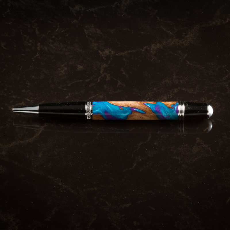 I turned this pen as a Mother's Day gift. I received the 'Cancun' Amalgam-Mutt blank from ImagineThat as part of a BOB he donated as a trivia prize in this year's Bash. It was my first time turning anything that wasn't wood (even though it's part wood).