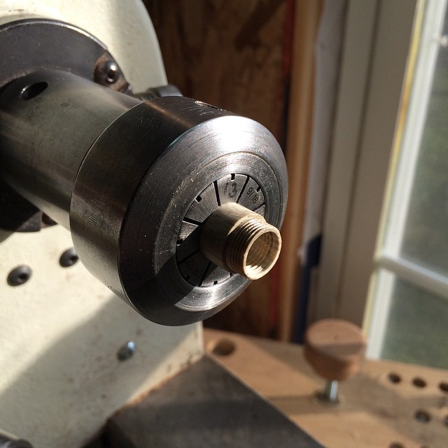 Threads are 12 x .8 double for the cap and 10x1 for the front section. It will ultimately house a custom ground 0.9mm JoWo #6 nib.