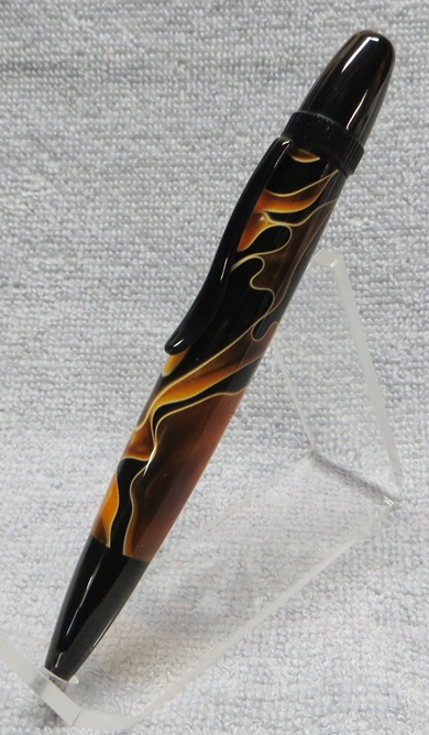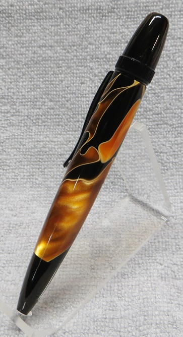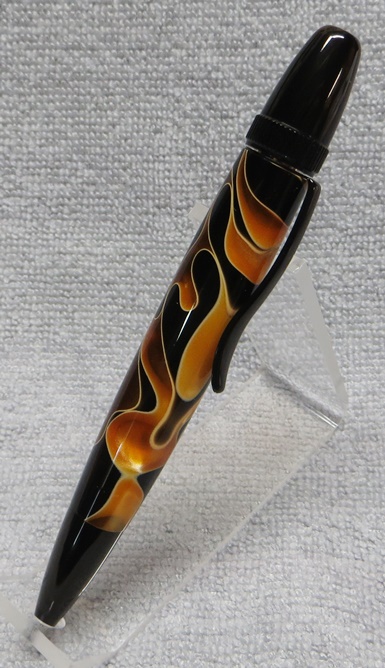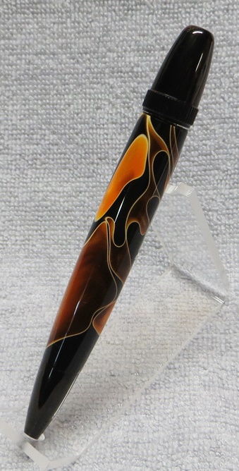 This is a Carbara kit in black chrome. The blank is an acrylic from Beartooth Woods called All Hallows Eve. I like both more than I thought I would, but especially the blank. It looks "smoky" in places, and I don't know if that's part of the blank, or because I reverse painted it with black.