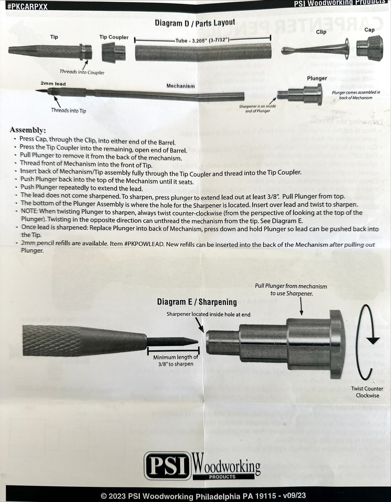 I bought this new carpenter pencil kit to make for myself. I find it athletically pleasing, this one has a stabilized maple burl barrel with gun metal plating. Looks aside , personally I think it has some design flaws. I'm attaching a photo of the instructions so you can see what I'm talking about. My first pet peeve is you have to thread the assembly into the nib end, but the threads are on a piece that is loose and needs to be able to move up and down. There's no way to get it tight. It's on the inside of the nib end and way down in there. My second peeve is in regard to the sharpener. It's located on the inside of the finial end. If I try to sharpen the lead while it's in the pencil, the lead just turns and doesn't sharpen. I had to remove the lead, sharpen it and then replace it in the pencil. Also, the sharpener is so deep in the mechanism, you can't see it and there's no place for the lead shavings/dust to go. It's beautiful pencil, a little top heavy. I'm interested in other opinions from people that have made one of these.