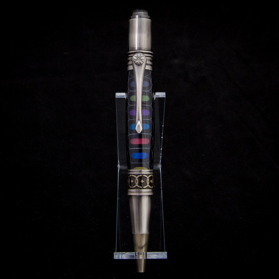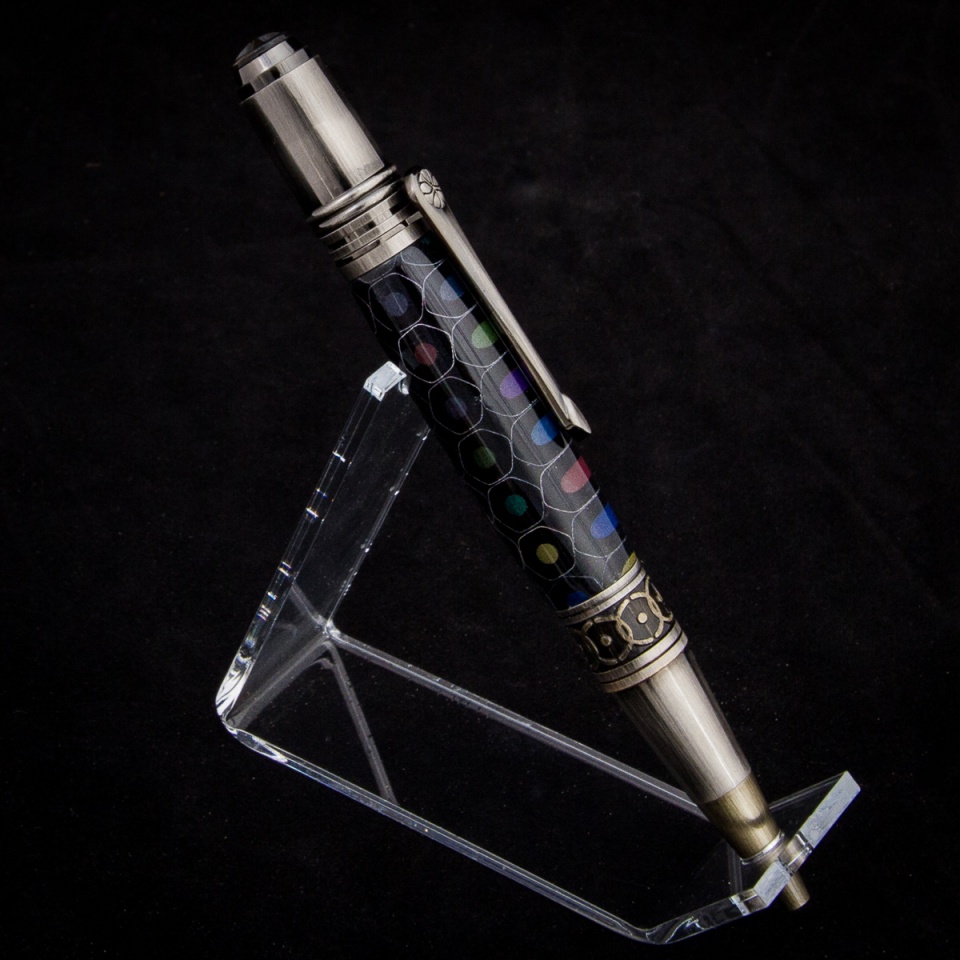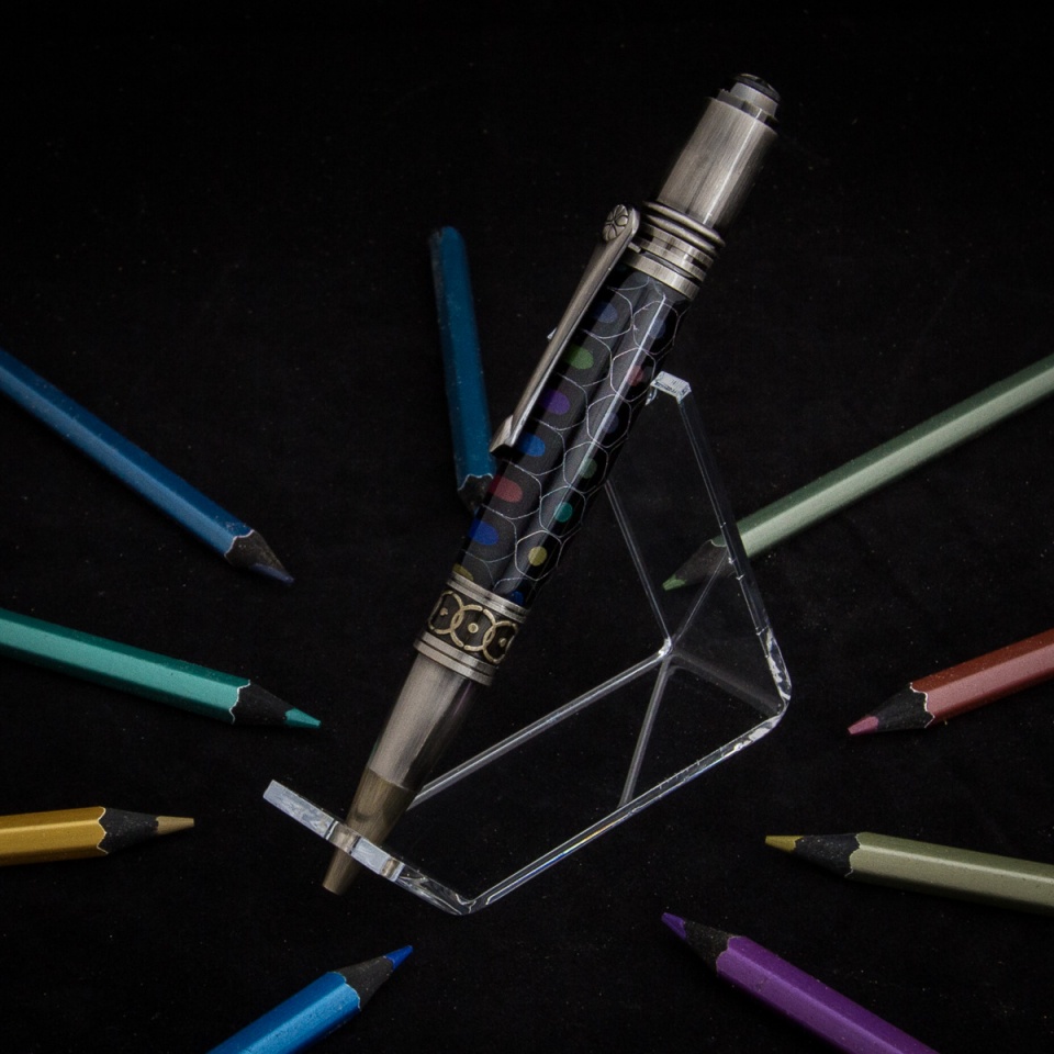 The brand of colored pencils obviously make a big impact. I was a little disappointed that the outer color on the pencils was so thin that it didn't really show through in the pen - it just looks white. If you look closely, you can even see that there must be some sort of white undercoat on the pencils as it shows a bit when they are sharpened. The hex shape on these was also pretty soft, and the pencils didn't really want to stack together as tight as I would have liked. They were definitely packed tight and compressed together as I had them clamped... if you look at the shapes in the pen it's weird how they arranged themselves.